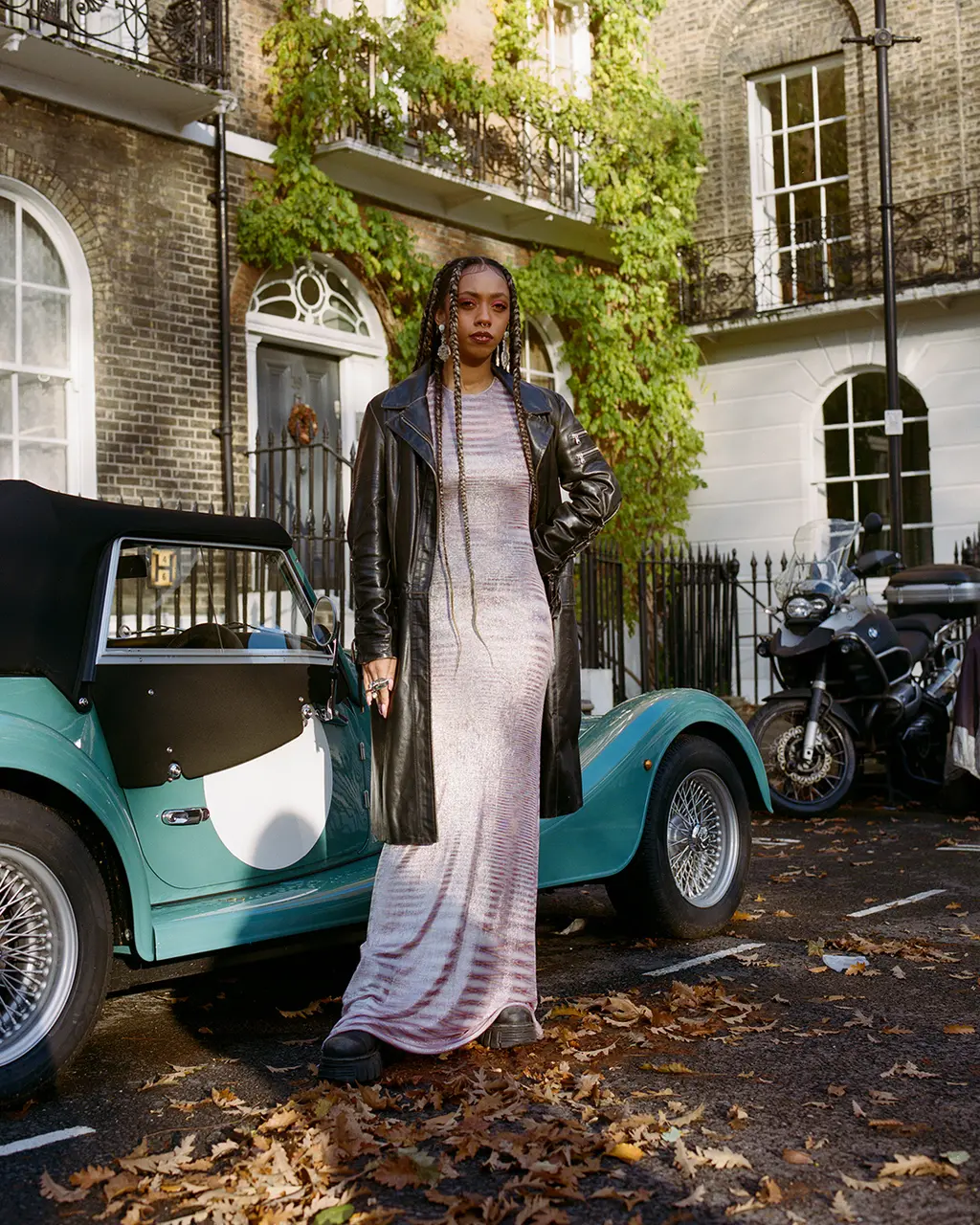 Nia wears dress MISSONI, coat stylist’s own and earrings MYRZA DE MUYNCK