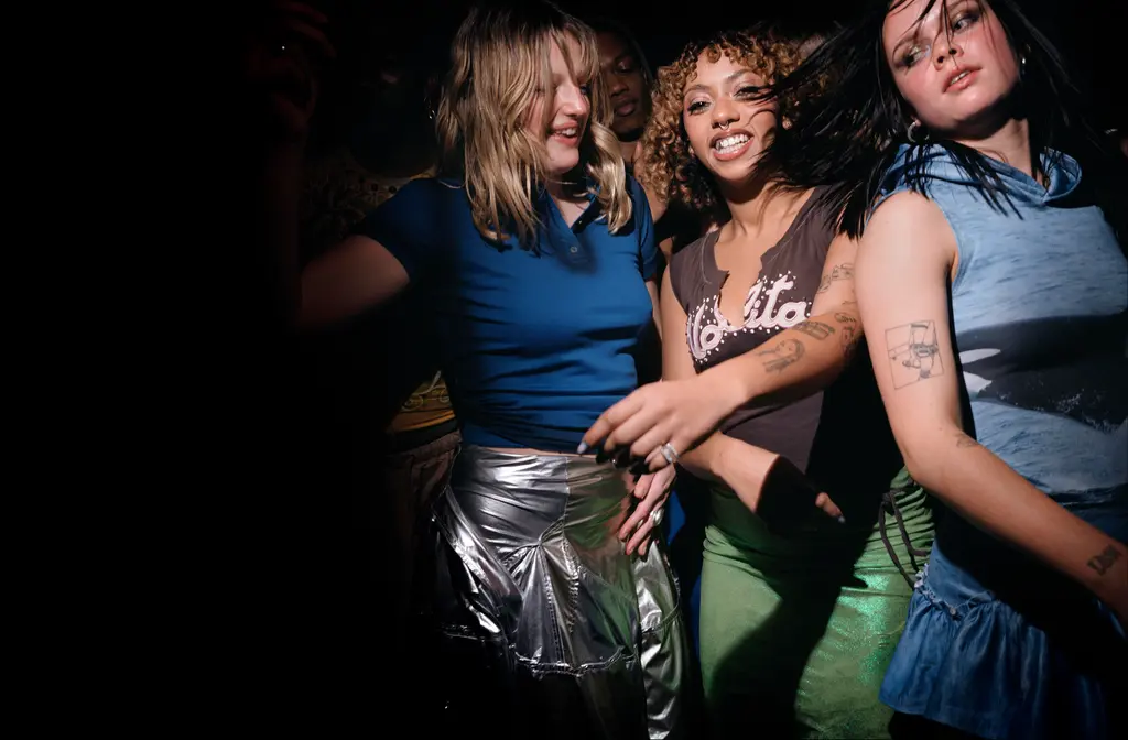 Five years on, Nia is primed to try something new. “No one’s really making Britpop at the moment, but I have a feeling 2024 is gonna be the year,” she says knowingly, sipping an oat latte that’s clasped between her slickly manicured fingers, airbrushed dark khaki and finished with delicate, hand-drawn white stars. “And I’ve not heard [a Britpop sound] in dance music, so I wanted to try it out.”