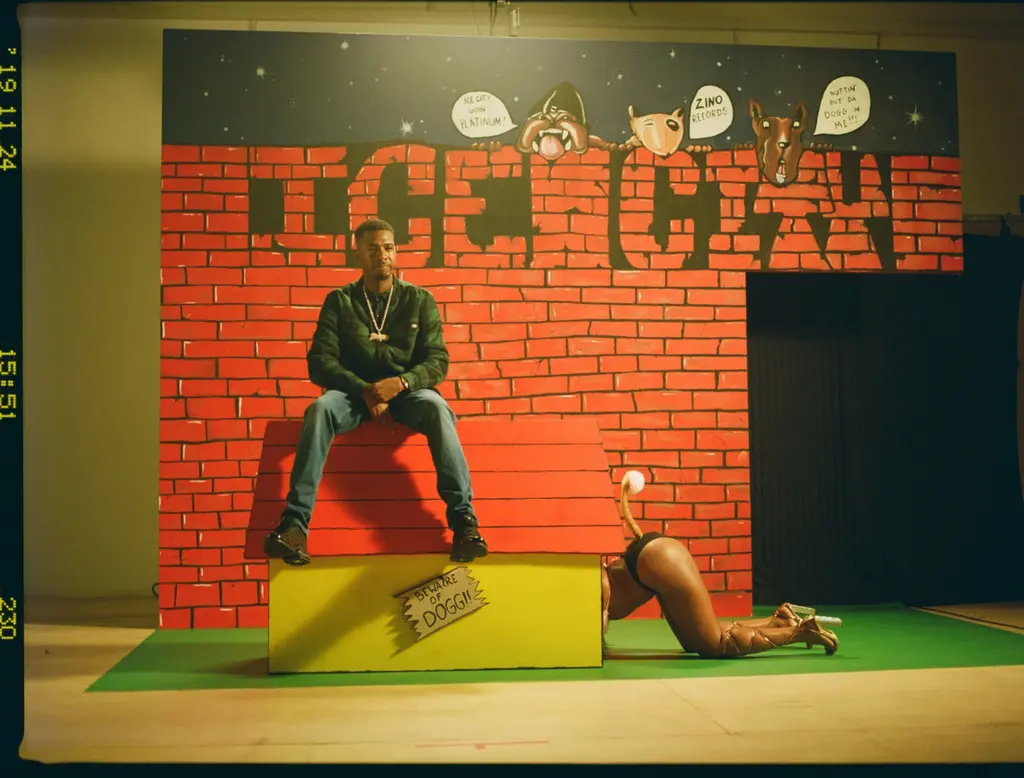 In the visual for Clout, Nines appears as the cover star of classic albums from across the ages: perched on a Honda and drenched in dry ice for Prince’s Purple Rain; clad in a black tracksuit and backed into a corner for Dizzee Rascal’s debut; backlit, cigar in hand for The Blueprint. Elsewhere, he cosplays as Dr Dre, Big Daddy Kane, Redman, Tupac, Berner, 50 Cent, Snoop Doog and more. He tosses popcorn at a Tekashi 6ix9ine lookalike in a nod to JR Writer’s I Really Rap. Finally, he sparks up on the cover of his own 2012 mixtape, From Church Rd To Hollywood.