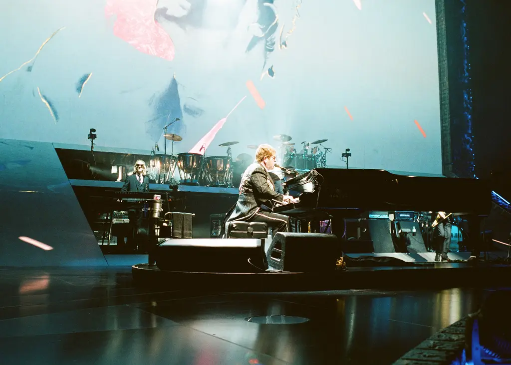 The early potential mawkishness of I Guess That’s Why They Call It the Blues is elevated by a slideshow of Martin Parr’s bored seaside day-trippers, taken from Elton’s personal collection, and serving to highlight one of longtime partner Bernie Taupin’s best and most bittersweet lines: “Between you and me, I could honestly say that things can only get better”. Two first half highlights, meanwhile, come in the form of Indian Sunset and Levon, a pair of tracks from the unfairly overlooked 1971 album Madman Across the Water (a record that holds the unfortunate distinction of being the lowest charting album of his 60 year career). Challenging and fragmented, it’s the first time that Elton seems fully engaged; guilty, perhaps, of relatively low energy versions of big hitters, Tiny Dancer and Rocket Man (the latter stripped of its more interesting reading – the terrifying isolation of celebrity – with an accompanying video of, uh, space).