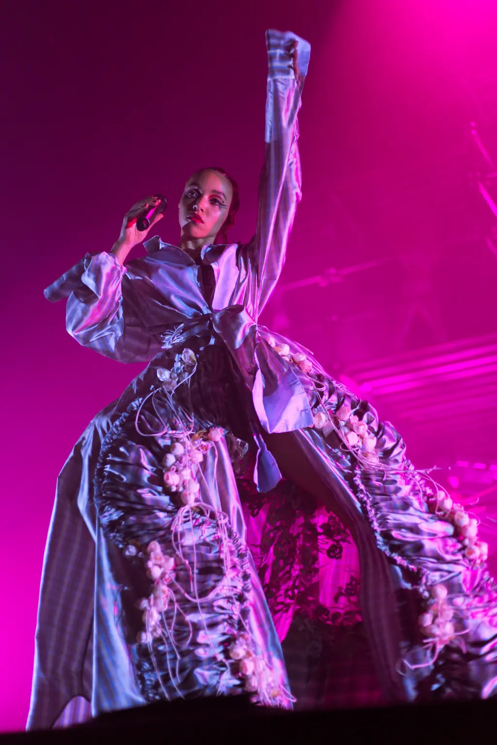 Familiar songs like Two Weeks, Video Girl, Figure 8, Lights On and twigs’ A$AP Rocky collaboration Fukk Sleep draw loud cheers from the crowds, with one concertgoer yelling “Get it girl!” during an interim moment of relative silence, during which twigs masterfully contorts her body.