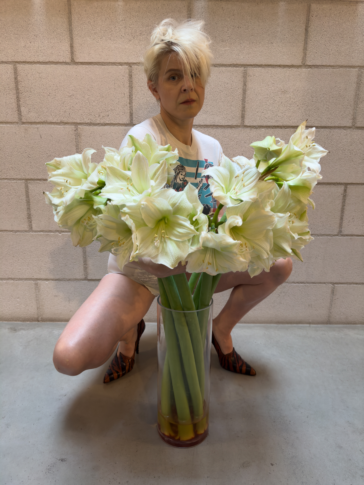 Robyn wears T‑shirt archive THE FACE courtesy of Rellik briefs courtesy of DISORDER ARCHIVE shoes VERSACE