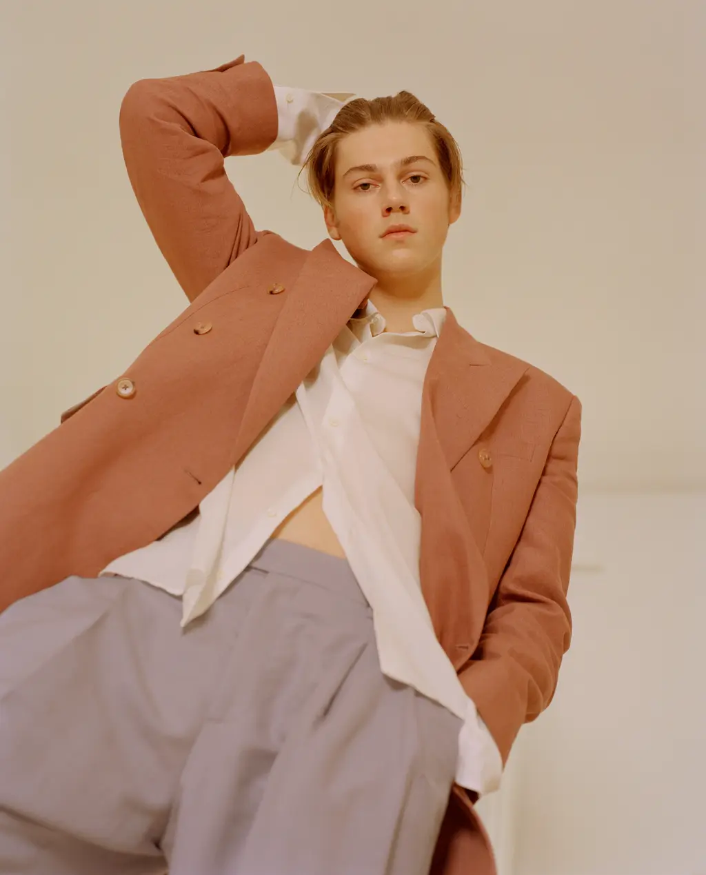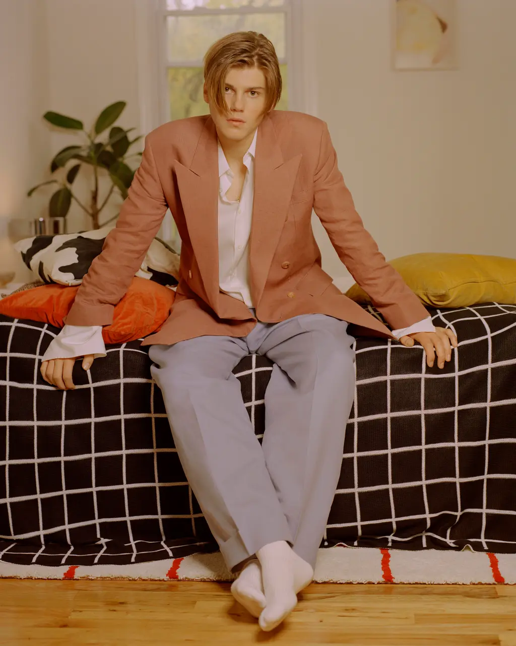 Ruel wears top by Joseph, jacket and pants by Paul Smith, socks stylist’s own.
