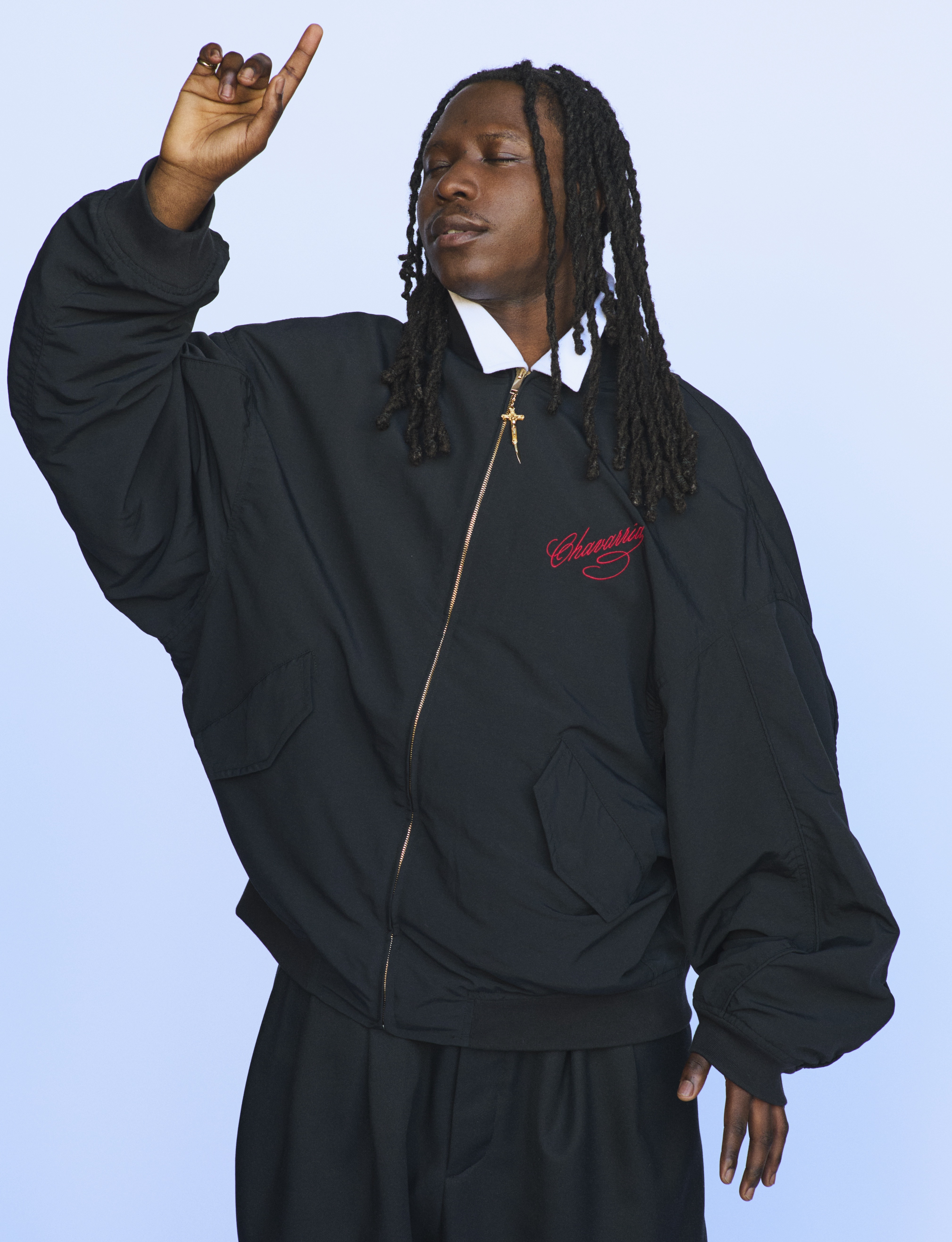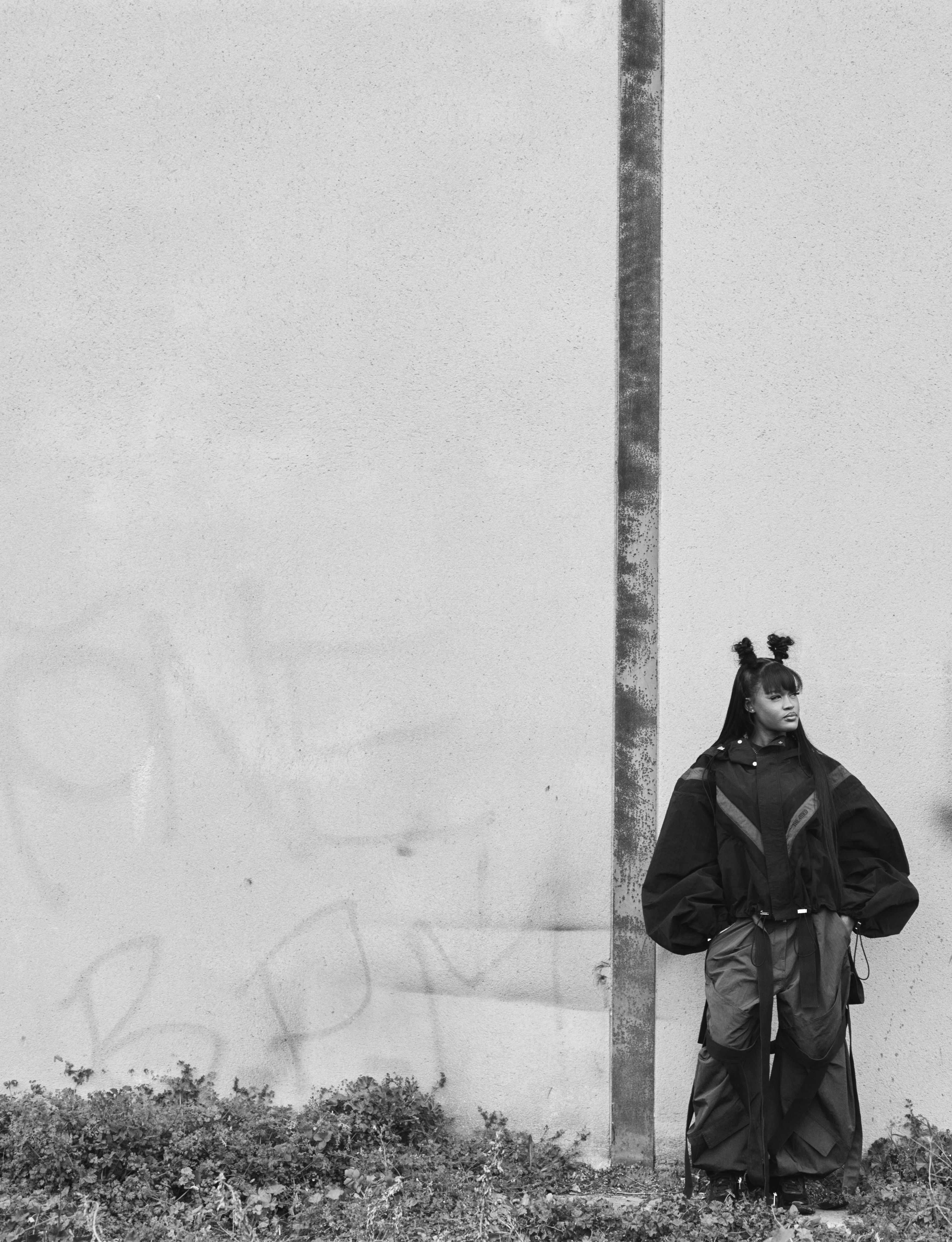 Chy wears jacket SUPREME and top and trousers KNWLS