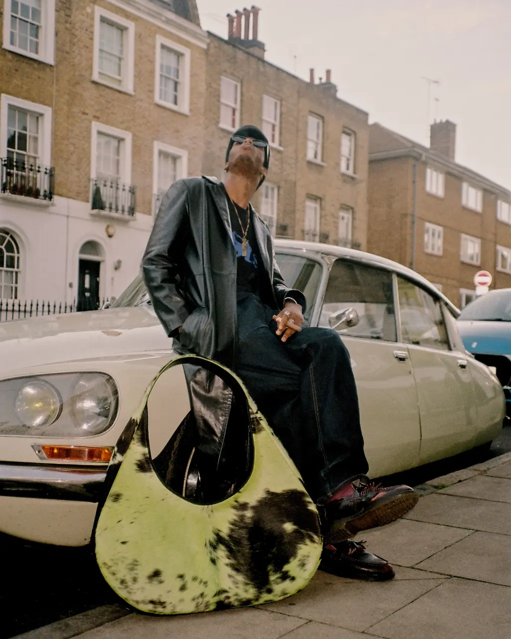 “My black leather flat cap is my staple,” the rapper explains. “It’s like Michael Jackson’s glove. When I die, I want it auctioned off for millions of dollars. Cigars calm me down, when I’m on a walk or when I’m out. Also they’re cool as fuck, so there’s that as well.”