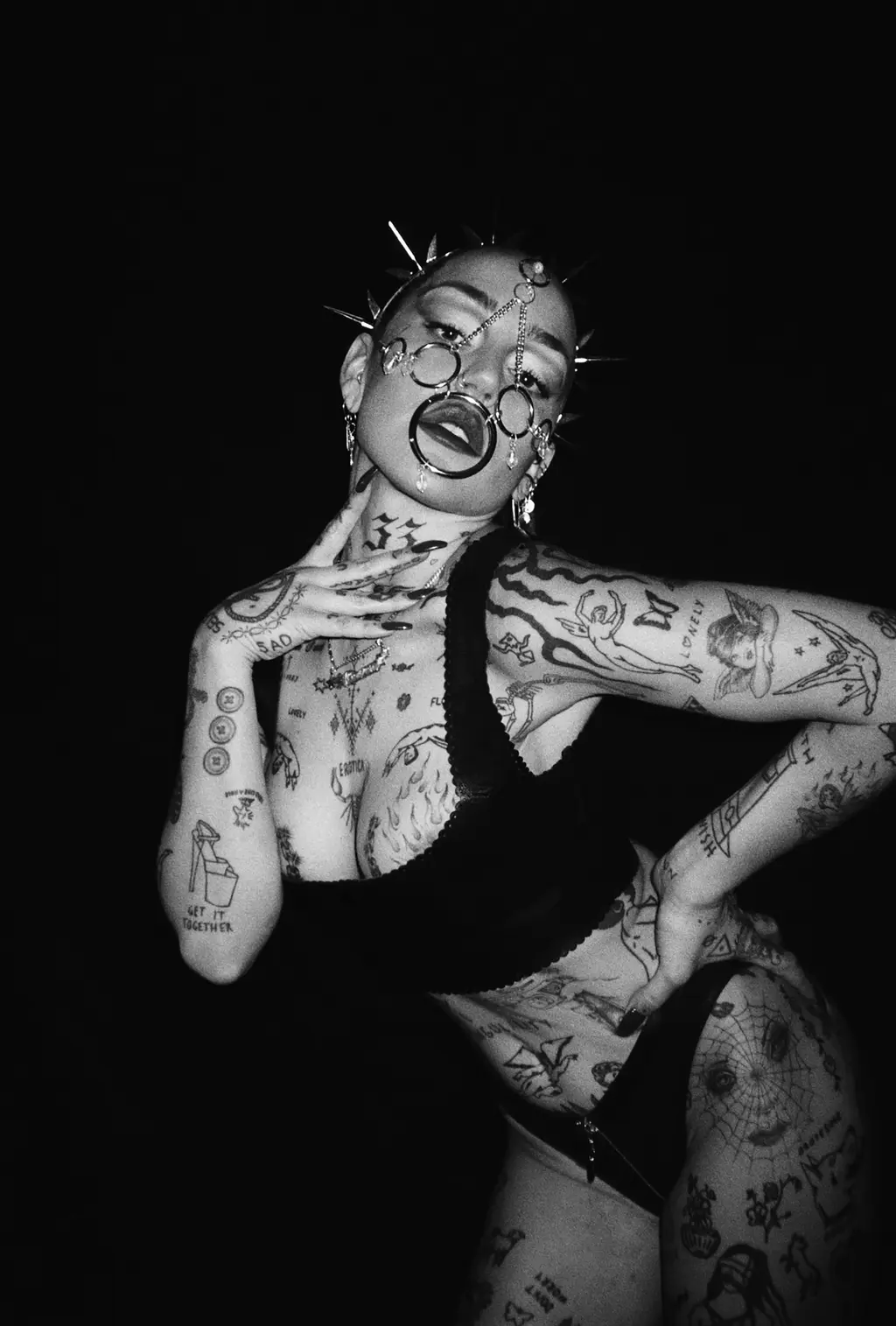 Musically, Brooke has spent the last few years trying different sonic directions to hone her own blueprint. From rap (Das Me) to industrial punk (War) and polished pop (Volcano), she’s experimented before settling on the “refreshing, exciting” sound of debut album Sexorcism, tentatively scheduled for a September release. “It was a miracle,” she exhales, saying she spent half her savings to fly to London and record with UK musicians Ashnikko and Oscar Scheller, who played a significant role for the project. “Ashnikko is basically a savant! We agreed she would help with an EP if I helped with a music video, but we had three tracks done in a day… within four days we had twelve strong, cohesive songs!”