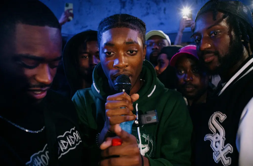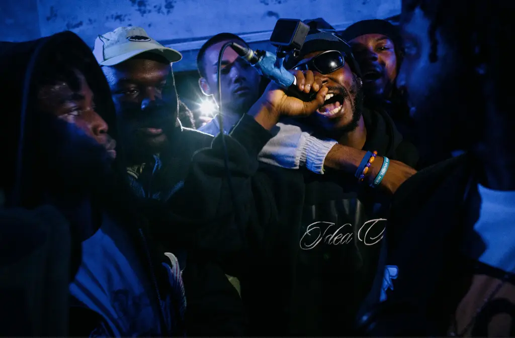 At around 9pm, the vibe intensifies. Everyone huddles in a circle and any MCs in the building are urged to push their way to the middle. Tonight’s event is a collaborative effort between the Play Piem club night, the Got No Data platform run by Luton rapper BXKS (who’s on hosting duties) and Victory Lap, the radio station that’s bringing fresh energy to the UK’s sprawling rap scene from its base in a Peckham arcade. The main attraction is the cypher. There are multiple crews in attendance and at least 25 MCs eager to grab the solitary, shared mic. A cypher often lets each MC spit 16 bars each before another artist jumps in. But tonight, there’s just a general guideline that no one should hog the mic. It has a camera gaffer-taped to it, recording the determined focus in their faces close-up. There are plenty of new wave alt rappers in the cypher, open-minded artists who are drawn to leftfield production that pairs spaced-out synths, jazz or soul samples with trap, drill or occasionally palpitating Jersey club drum patterns. This scene is often labelled “chill rap” on TikTok, although most people wince when you mention that.