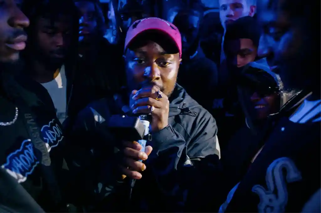 Live, communal MCing is in UK rap’s DNA. In the early ’00s, before streaming, social media and YouTube, first-generation grime rappers made a name for themselves in clashes and on live pirate radio broadcasts, taking influence from UK garage and dancehall, where live MCs played a crucial role in hyping up the crowd. When grime enjoyed a mainstream resurgence in the mid-2010s, there was a new wave of communal MCing, often in the form of massive groups gathering around the mic at London’s now-defunct Radar Radio, where Dave occasionally showed up in the early stages of his career.