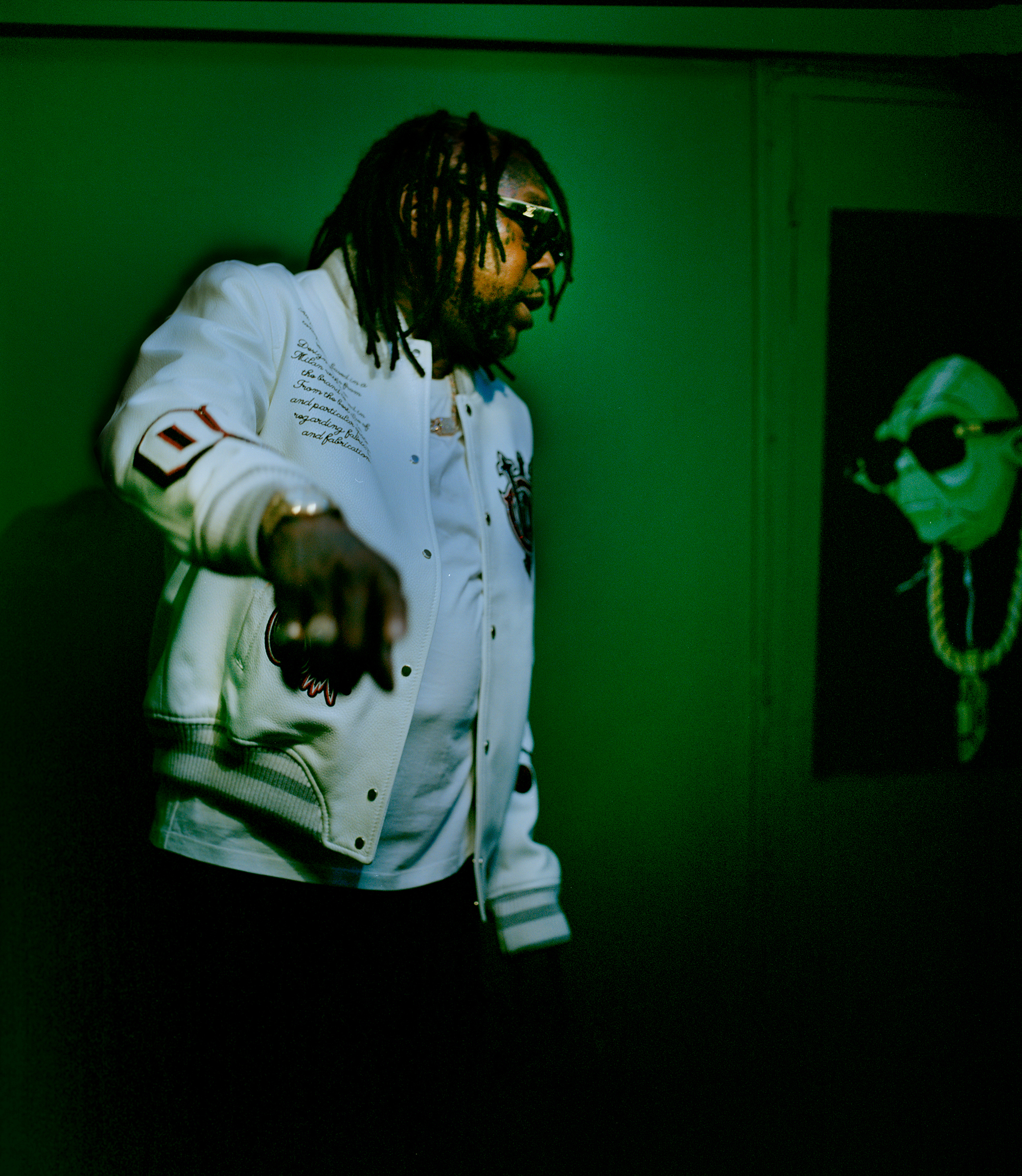 Vybz Kartel wears jacket, T-shirt and trousers HERMÈS and jewellery talent’s own