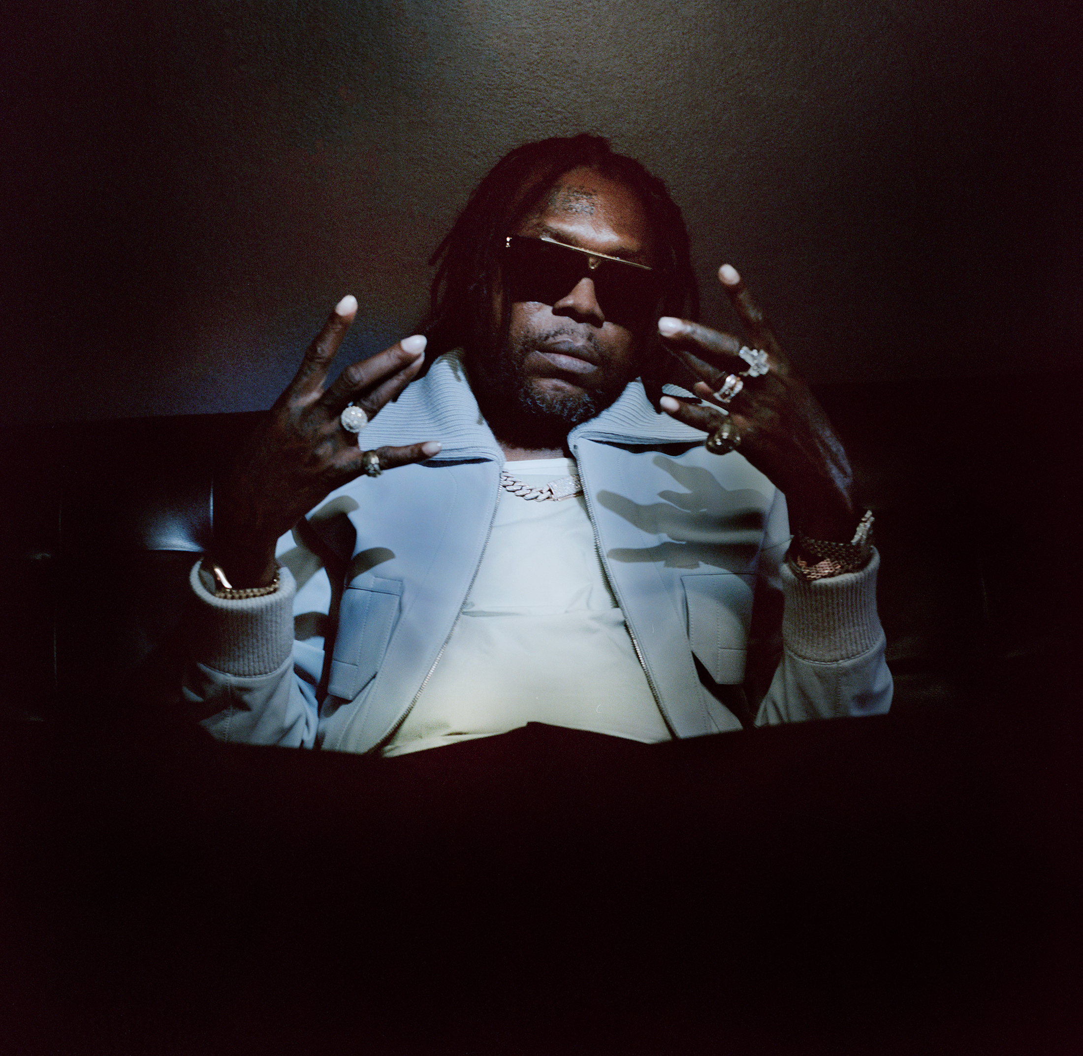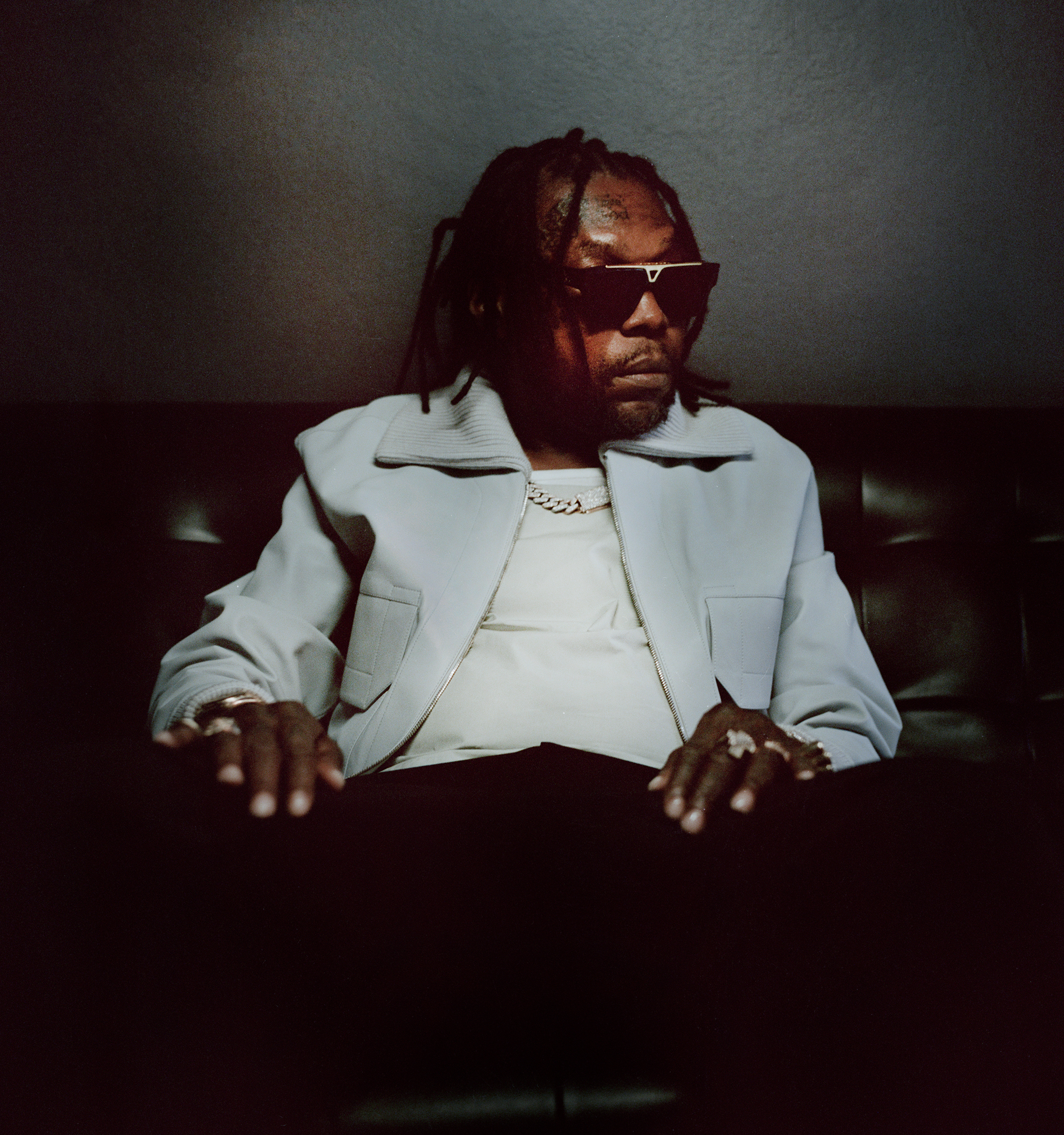 That same year, he helped boost the trajectory of rising Jamaican star Shenseea with their collaboration Loodi. He also made appearances on tracks by Busta Rhymes, Bounty Killer and Squash. Now that he’s a free man, Kartel’s dogged efforts to maintain relevance while inside have paid dividends. For the last six months, he’s been on a non-stop welcome-back tour that, on social media, looks like a long-anticipated, all-smiles victory lap. We’ve seen him hang out with two of his sons, Likkle Addi and Likkle Vybz, both now young adults he can share spliffs with. He’s reunited with Popcaan, who gifted Kartel one of the diamond-encrusted watches he’s wearing when we meet.