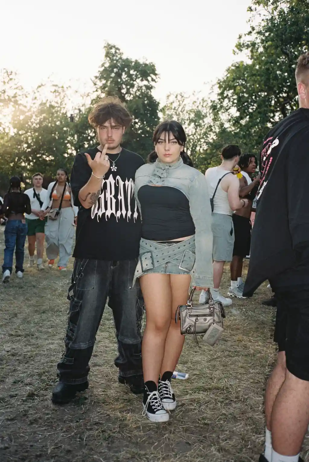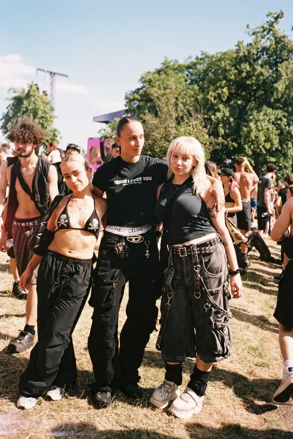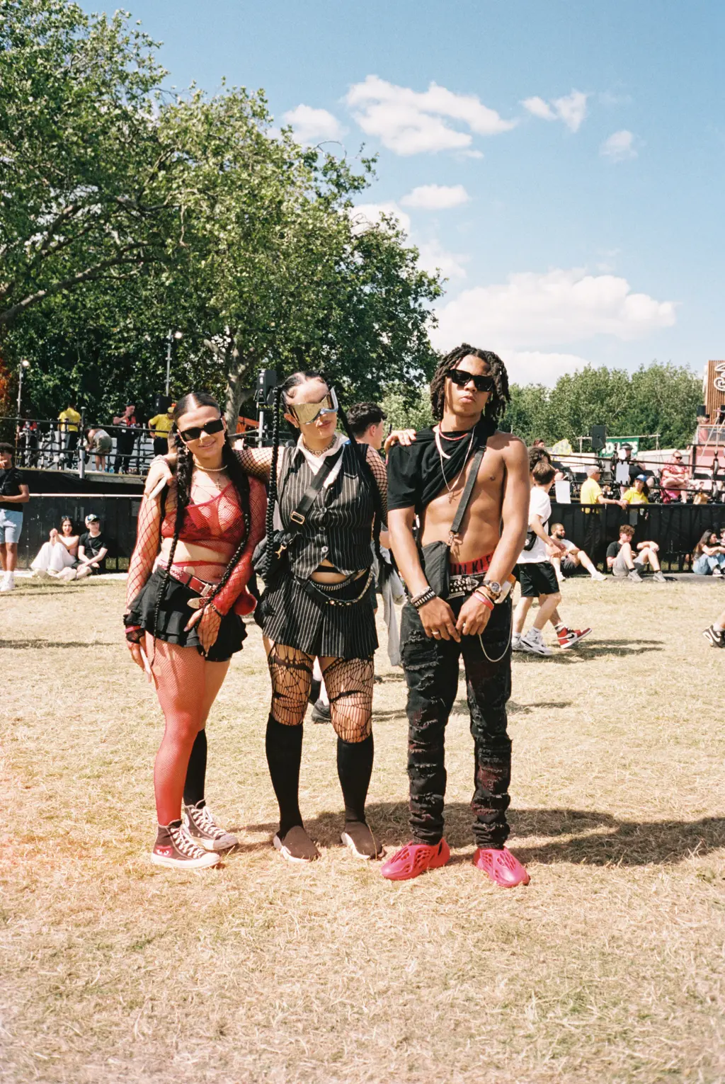 But on the Friday of this year’s Wireless, many punters looked more like they were at a Cradle of Filth gig than a rap show. Thousands of fans braved the scorching hot sun in all black fits, pairing chunky platform boots with lace tops, gothic font tees, metal chains and face piercings. Think: Mayhem meets The Matrix.