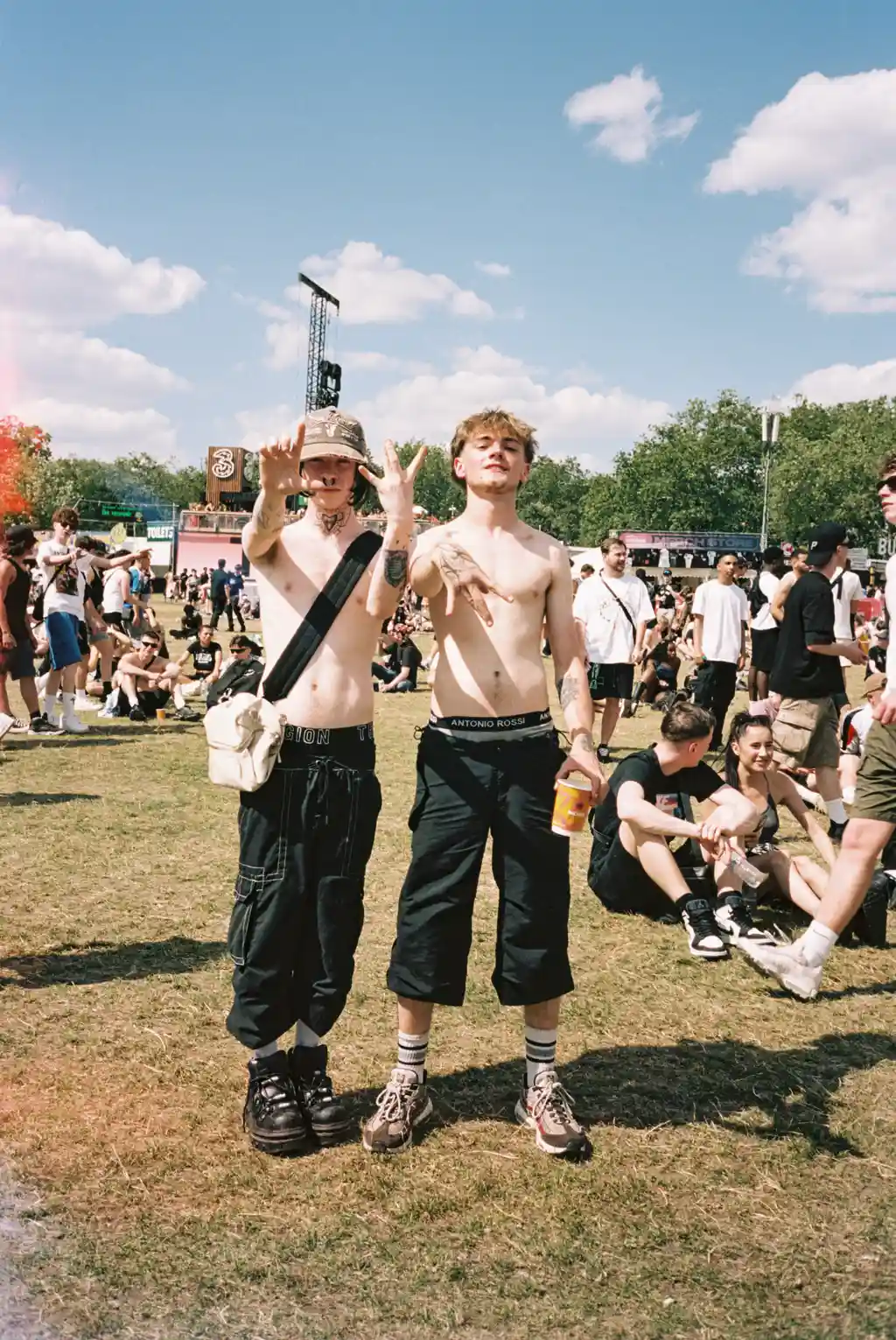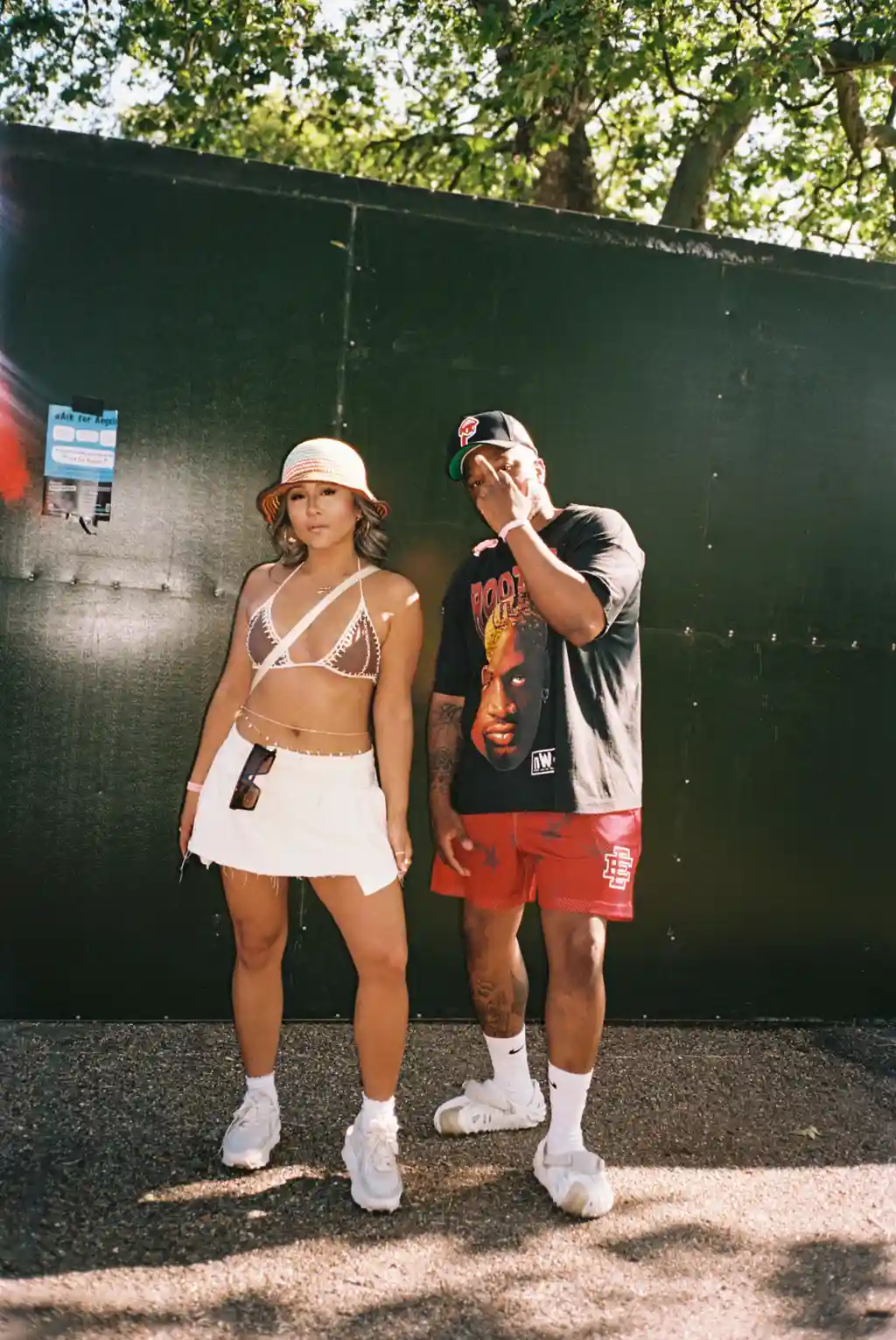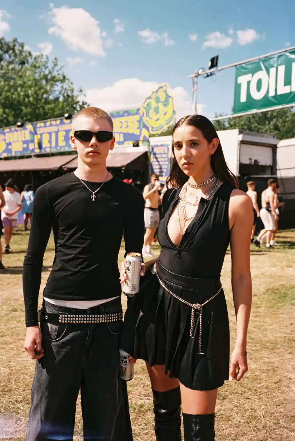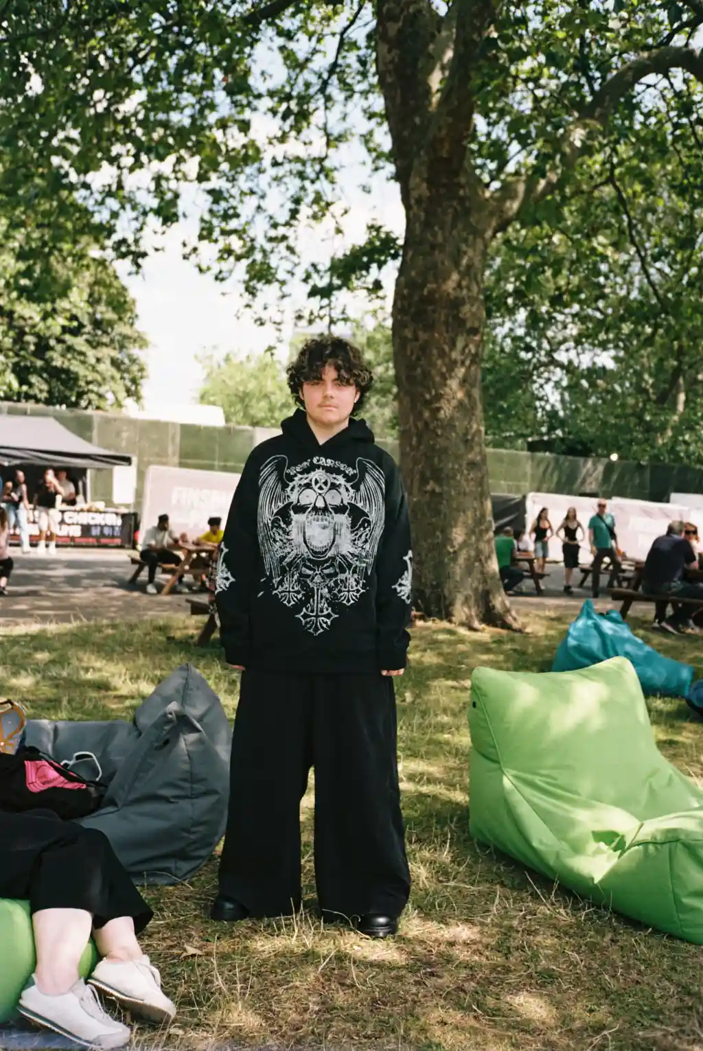 But on the Friday of this year’s Wireless, many punters looked more like they were at a Cradle of Filth gig than a rap show. Thousands of fans braved the scorching hot sun in all black fits, pairing chunky platform boots with lace tops, gothic font tees, metal chains and face piercings. Think: Mayhem meets The Matrix.