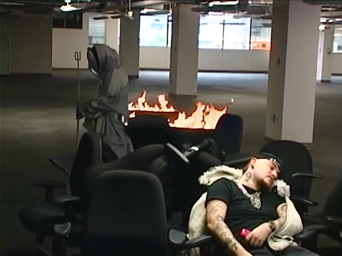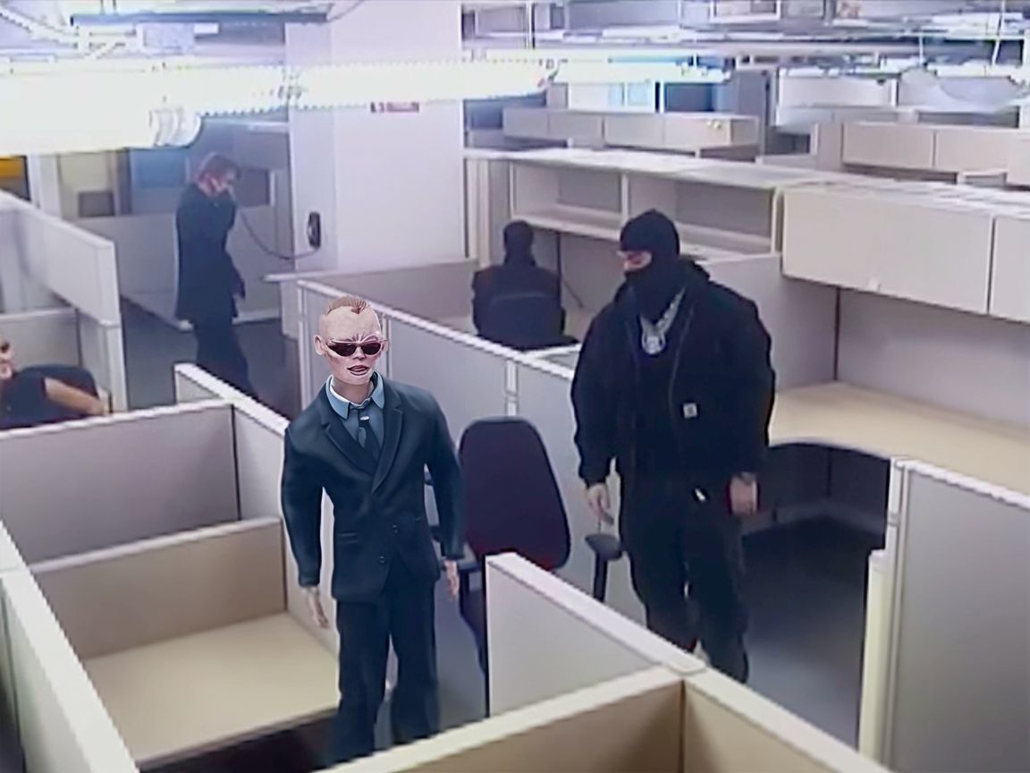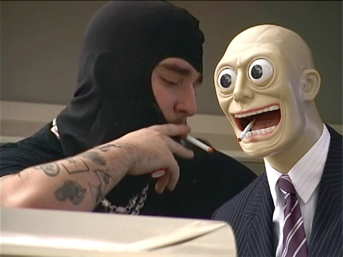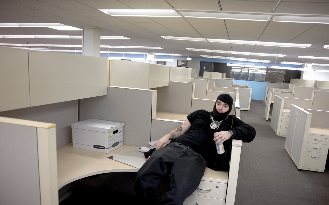 Yeat wears jacket CARHARTT WIP and T‑shirt, balaclava and jewellery talent’s own. Jester wears hoodie and trousers ANONYMOUS CLUB