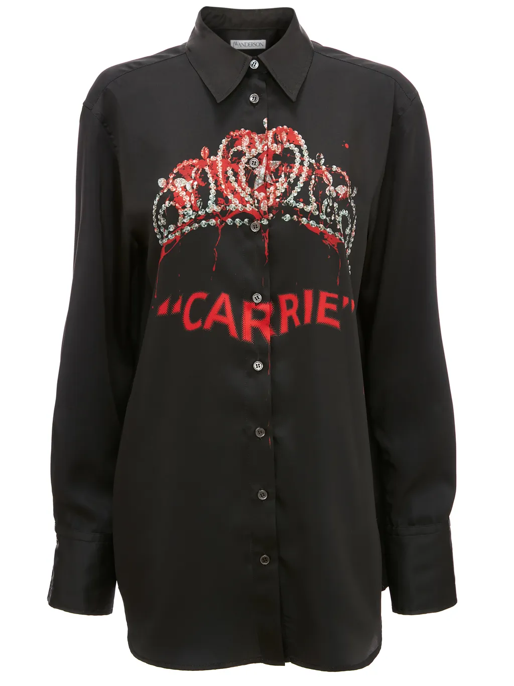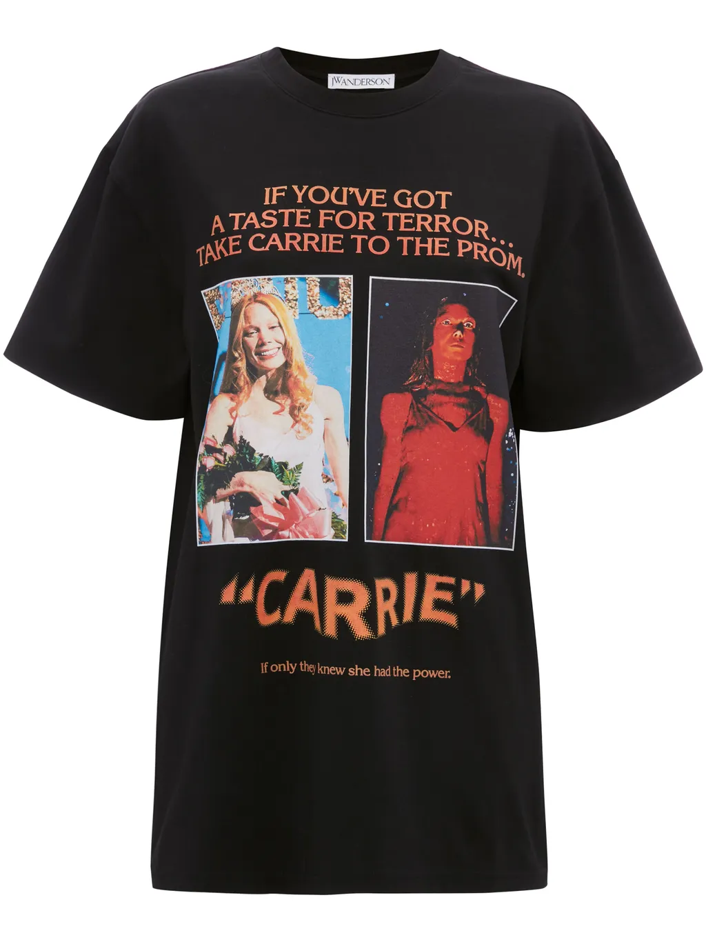 You were warned never to push Carrie to the limits… Now, JW Anderson has partnered with MGM on a capsule collection featuring none other than the blood-soaked prom queen. A full capsule collection of ready-to-wear puffer jackets, T-shirts, tracksuits and printed co-ords, the spellbinding AW22 offering features prints of Sissy Spacek before and after pig-gate, killer (literally) quotes, and an accompanying campaign starring none other than the magical Lily McMenemy. Warning: might induce levitating, revenge rampage or Bible bashing. For now, we’ll pray.