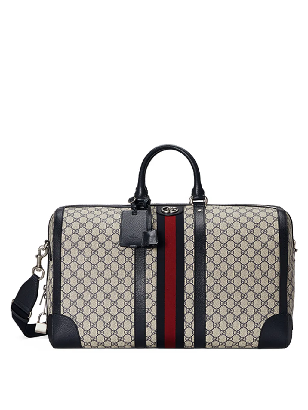 If you're a recent holidaymaker, there's a strong chance you're carrying the emotional baggage of mourning a lost suitcase. While we can't promise a solution to the chaos, we're here to canvas for Gucci's new luggage collection, an extensive array of carriers – from pouches to mini bags to duffles to carry-ons – monogrammed to the max with a navy version of Gucci's motif. Replace whatever's gone AWOL with one of these decadent beauties, keep calm and carry on!