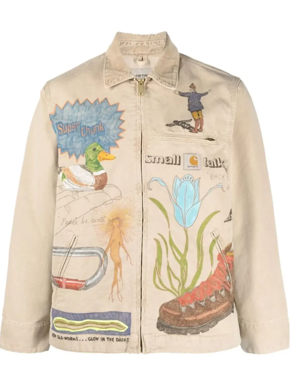 In 2021, the late, great visionary Virgil Abloh co-signed Small Talk Studio – a bespoke clothing brand based in New York City. Much loved for its DIY sketches on trucker jackets, jeans, oversized T-shirts and button-up shirts, Small Talk’s one-a-kind style, sometimes called “artwear”, makes it a uniquely offbeat offering in the often saturated streetwear world. Now, they’re partnering with workwear giants Carhartt WIP for an exclusive collection sold at Browns, featuring sketches pointing to hot, hazy Americana days. Summer may be nearing its end, so slap it on your back instead.