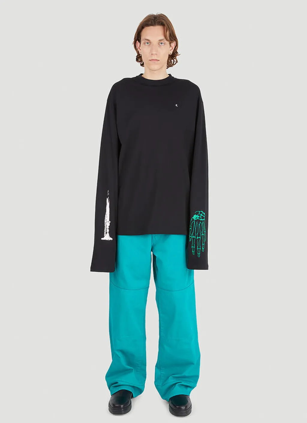 Raf Simons — Extreme Sleeve Skeleton T‑Shirt in Black