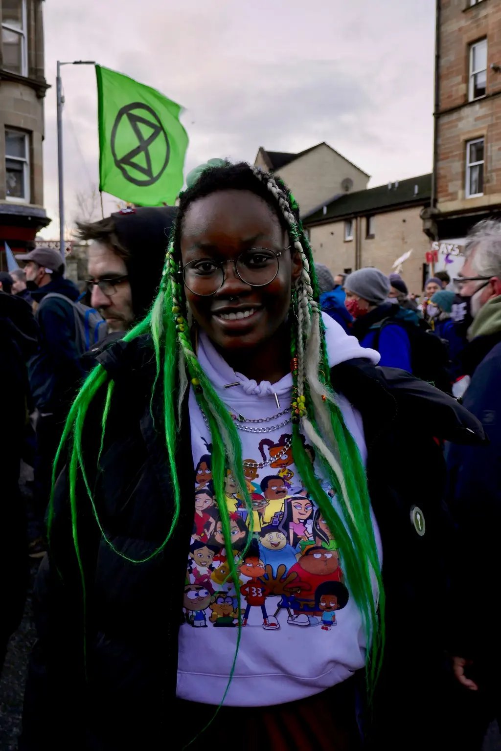 I’m a new student at the University of Glasgow, how could I not come? COP is in my city, so I have to support the movement. I’ve seen such sick creative stuff: an all-female drumming band and some guy dressed as a dying Poseidon surrounded by fish to name a few.