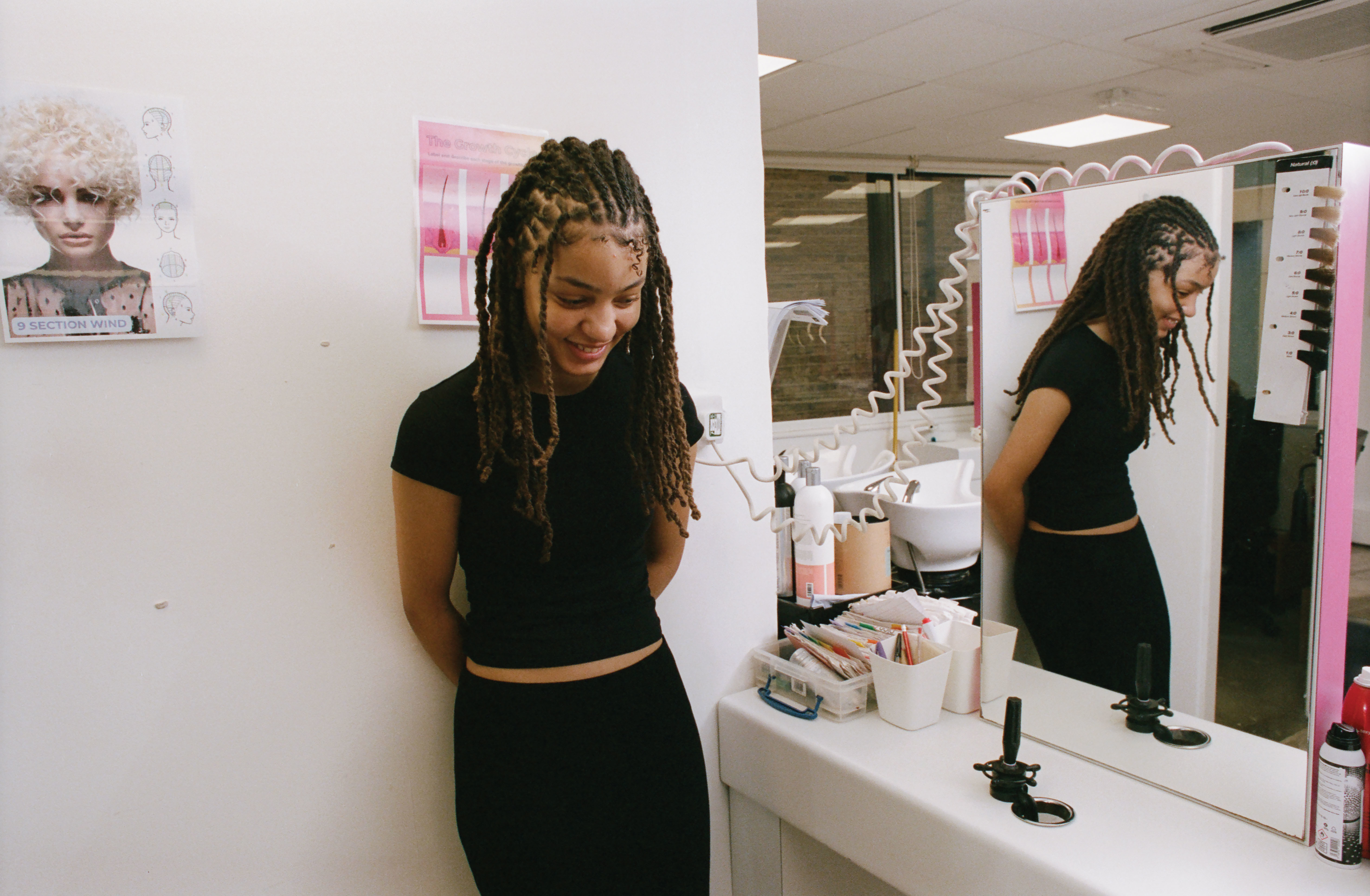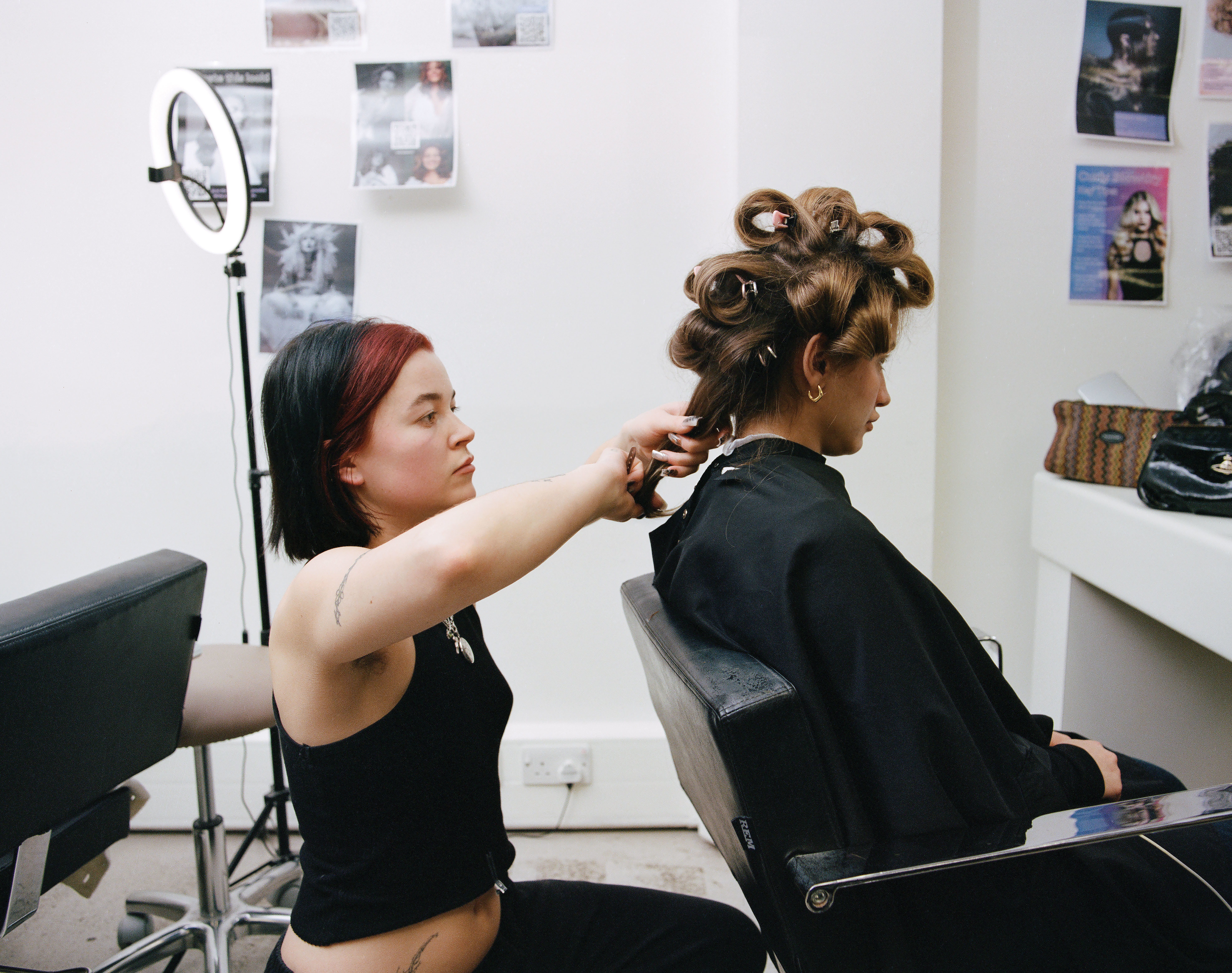 Her favourite thing about the job, aside from perfecting the bounciest of blow dries, is when customers remember her. “There’s an old lady – she melts my heart so much – who always asks for me to wash her hair because she enjoys catching up with me. It’s the sweetest thing when people look forward to seeing you and having a conversation with you at the basin.” Out of her group of friends, Imogen is the vocational outlier. All of them are taking up law – even her boyfriend and sister. “At my school, when people were talking about what they were gonna do after GCSEs, it was never hairdressing or an apprenticeship, especially if you didn’t already have a connection to those things. Maybe their parents are trying to push them. Mine have always been quite chill.”