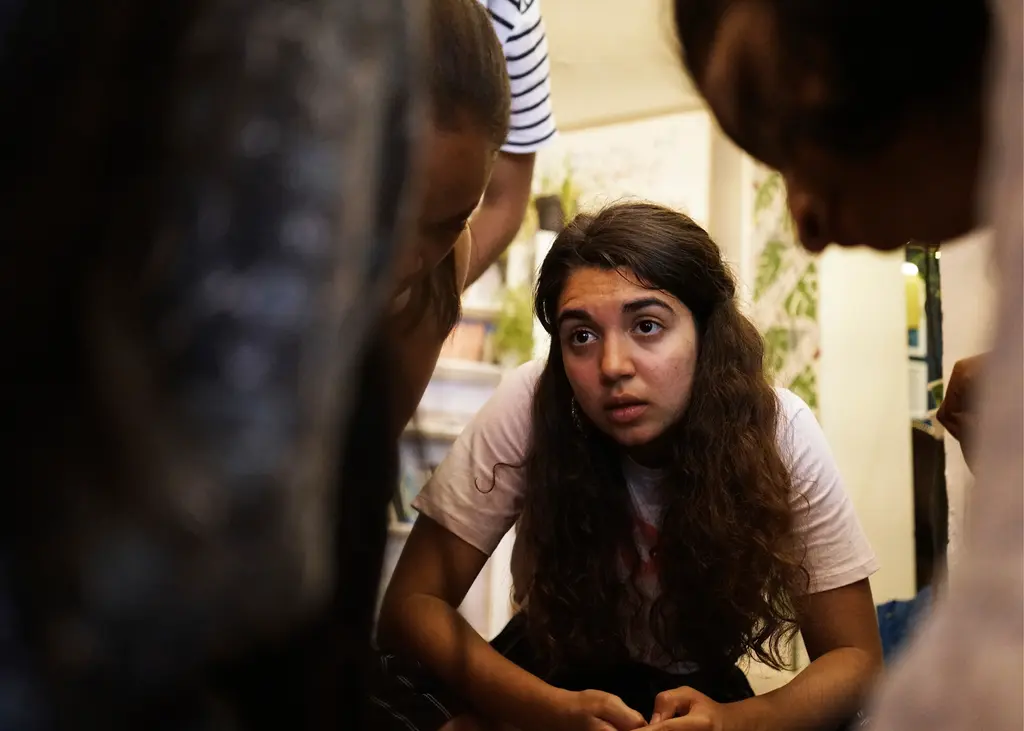 Sitting on the floor in a circle, are roughly twenty young people, aged between 17 and 22, shoes off, sharing stories about boundaries and free speech.