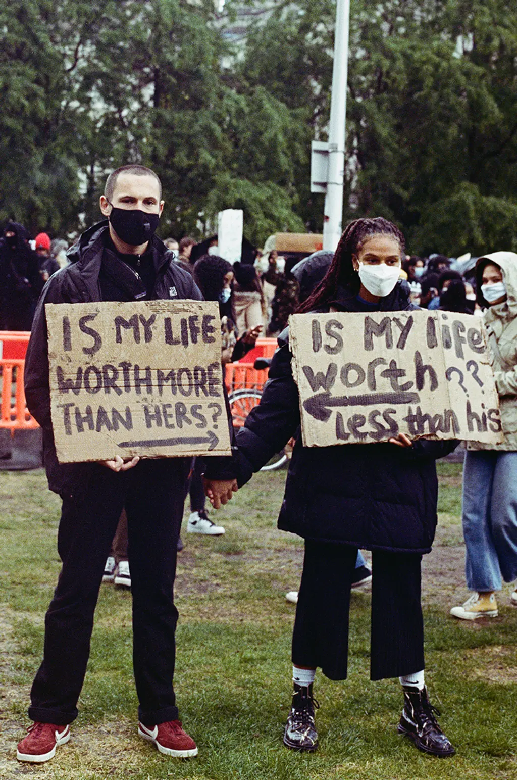 The name of George Floyd and many others were roared by the crowds, such as fellow American Breonna Taylor and Britain’s Belly Mujinga and Shukri Abdi. They are still seeking justice to be served. Placards were crafted out of cereal and pizza boxes, Amazon packaging and canvases. “I cannot believe I’m 16 and fighting for innocent people’s lives,” read one.