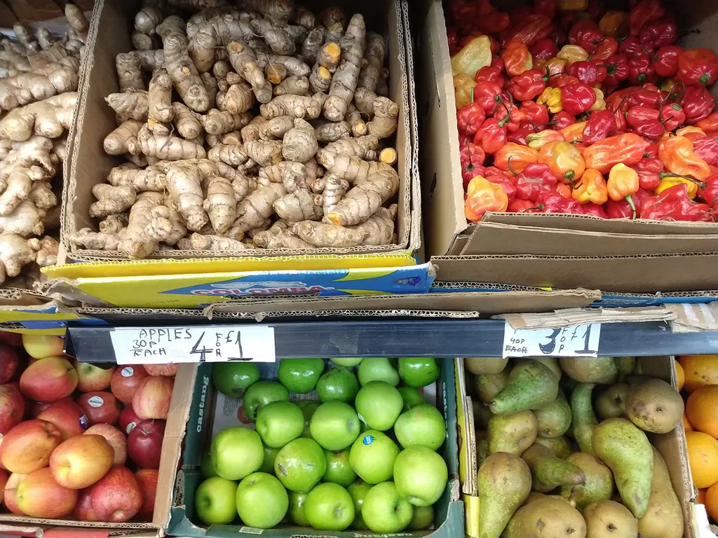 Nour Cash & Carry is one of Brixton’s driving forces, or, as Mia calls it, “a feeding tree.” The Shaheen family started the shop 20 years ago; thousands of people move through it each week as it provides affordable heritage foods to the Caribbean, West African and Middle Eastern diasporas – foods that often can’t be found on the average supermarket shelf.