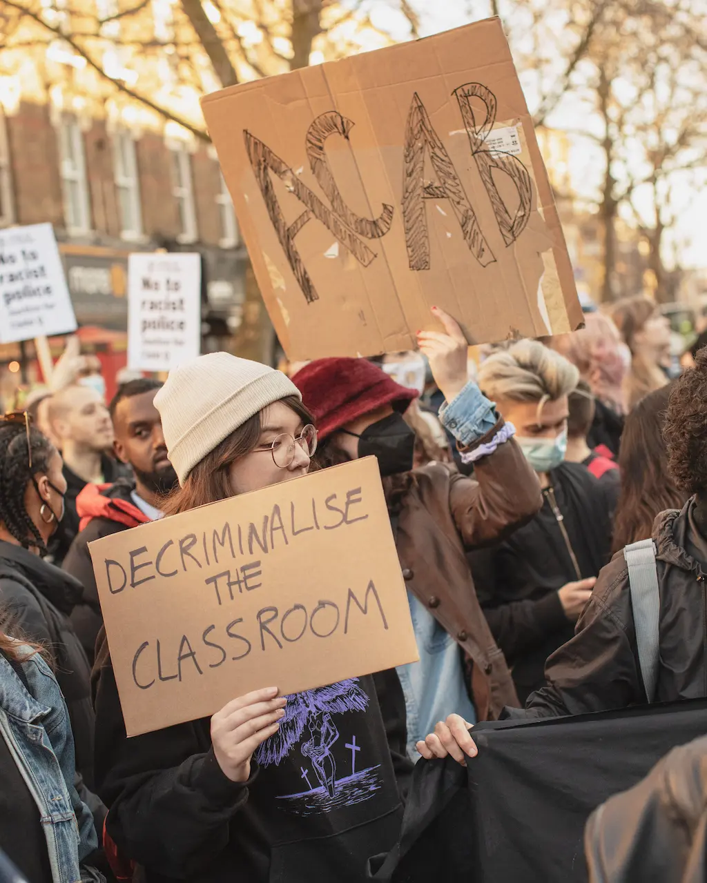 The protest ended peacefully at around 7pm. As well as London, gatherings of resistance and solidarity took place across Britain over the weekend, including in Manchester. Petitions are circulating online calling for no police in schools which, given the statistics that 25 other children were strip-searched in Hackney schools last year, are more important than ever to get behind.