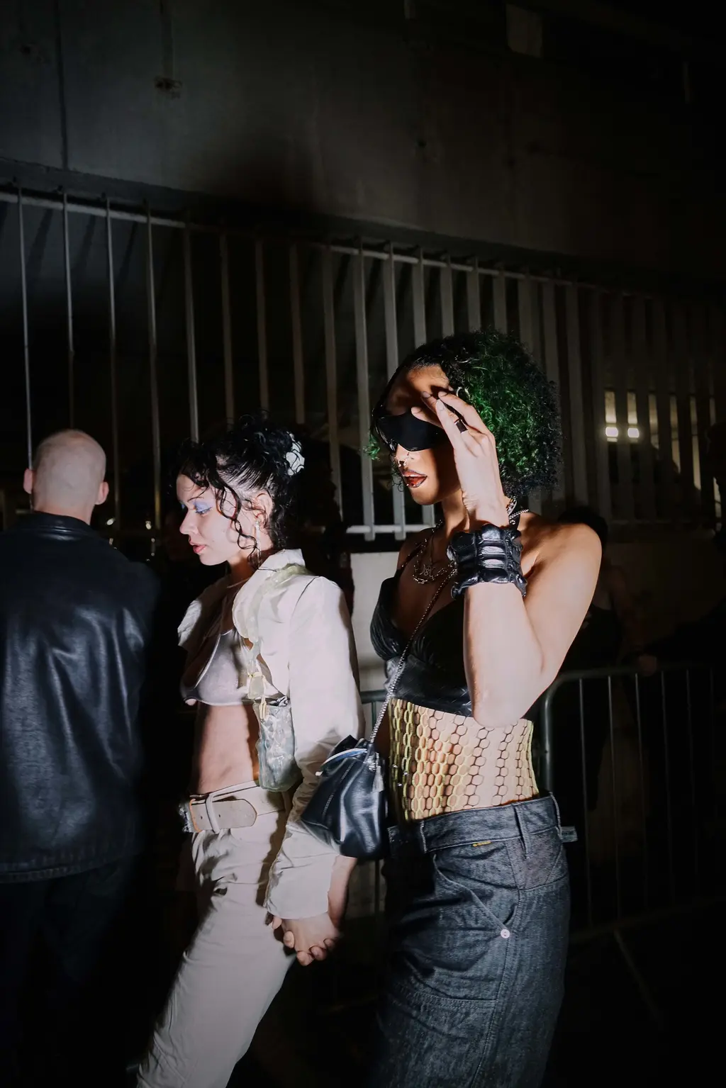 Key fashion signifiers: cargo skirts, trousers, shorts, everything; Teflar mini crossbody bags for the rave and Telfar maxi bags for business; tooth gems; Mowalola baby tees; NTS tote bags