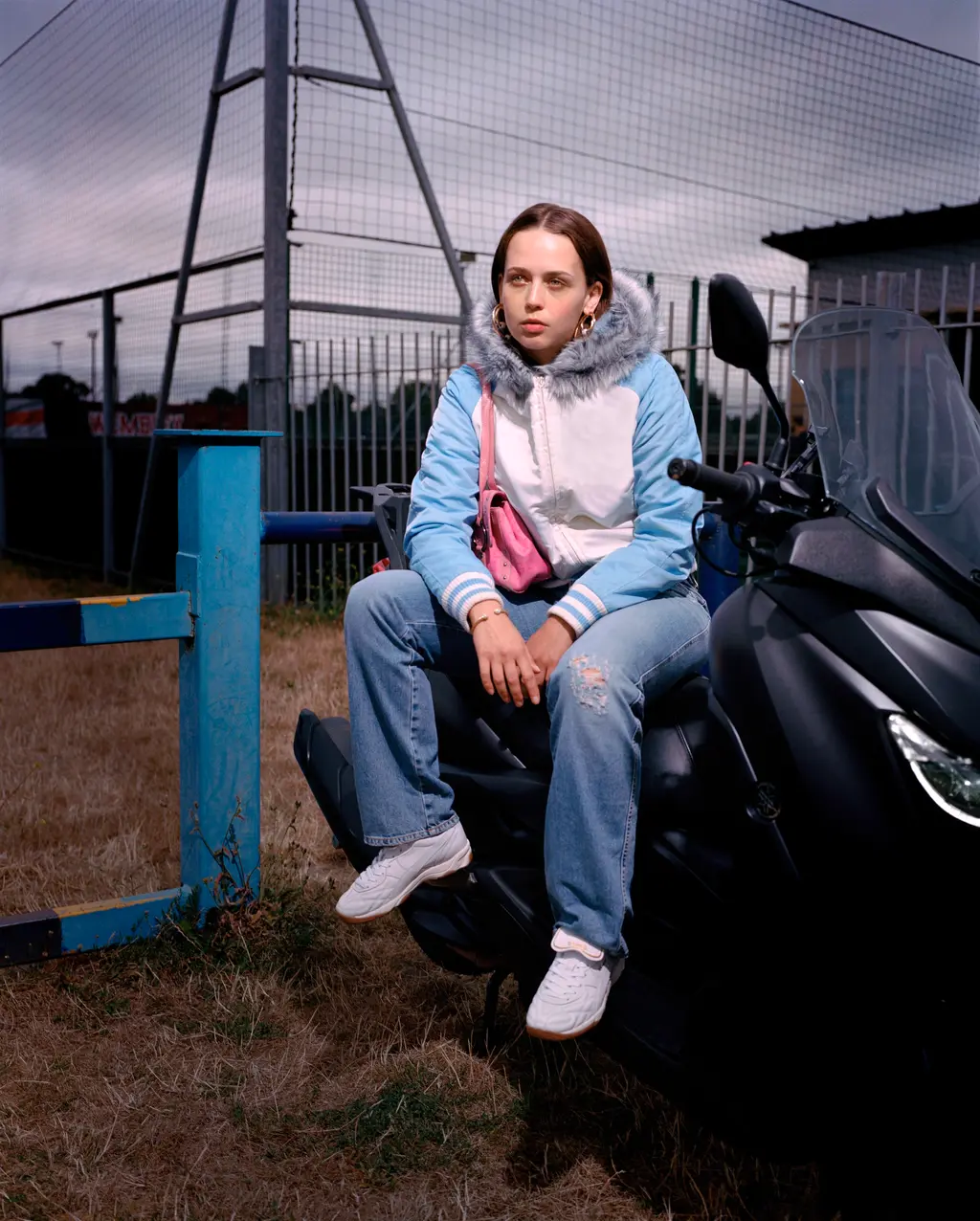 For her latest project, a Puma King Indoor campaign, Rhiannon tapped into an aesthetic sweet spot between late-90s and early-2000s London, when collared polos, keeper rings, baggy nylon tracksuit jackets and hooped earrings reigned supreme. Raised in southeast London’s Abbey Wood, she knows the look from first-hand experience.