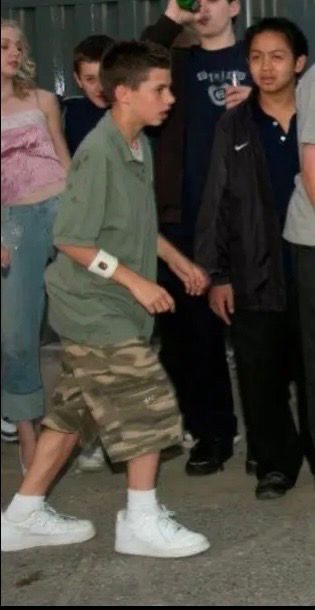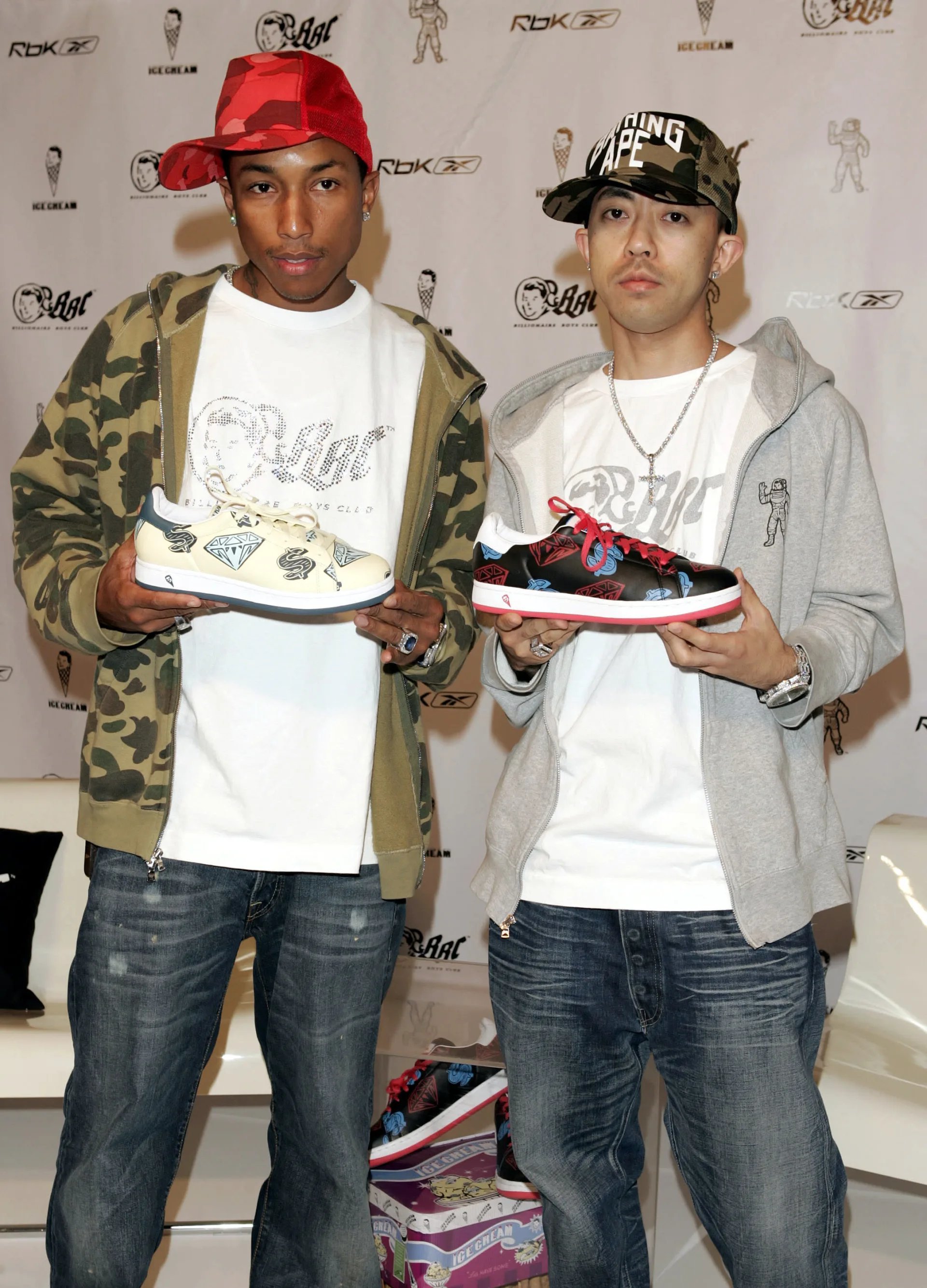 “I’ve got a photo of me at a friend’s [opposite page, centre]. I think it was their bar mitzvah, so I must have been 13 or 14. I’m in cargo shorts, Bape trainers, a N.E.R.D. cap and a big sweatband up my arm because I was so obsessed with Pharrell. It was like: ‘Oh, I understand why I love clothes and style so much.’ It’s worlds away, but it isn’t – it’s style and culture.”