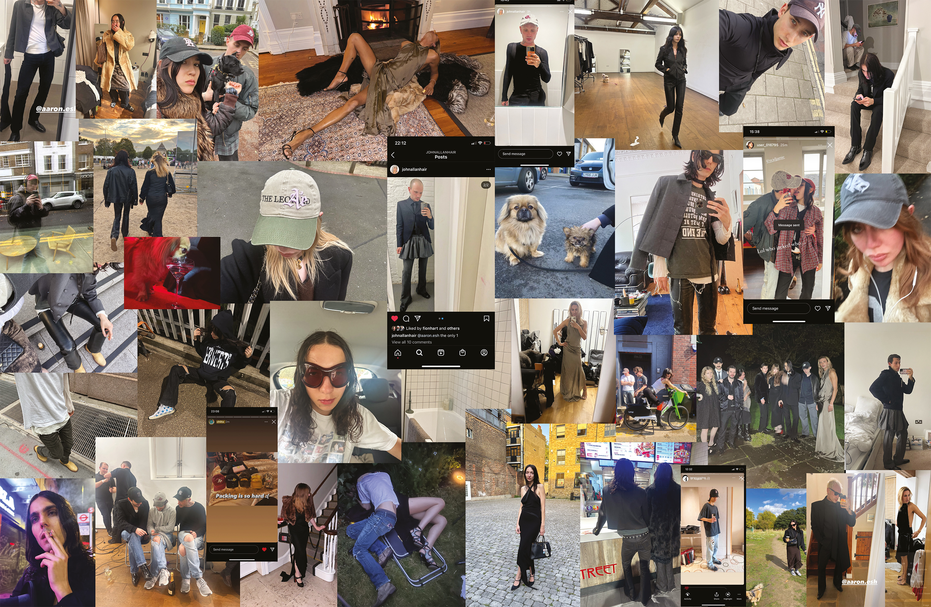 Aaron is clad in pointed Chelsea boots, distressed grey skinnies and one of his own abbreviated jackets. He offers a cup of tea before introducing a tight team of designers, each one as understated as he is. His penchant for partying isn’t quite what you’d imagine, though. Forget tar-lined warehouses or scatty squats. His are DIY soirées, where hot young things adorn themselves in Vinted couture, swill homemade martinis and chuff on Vogue cigarettes.