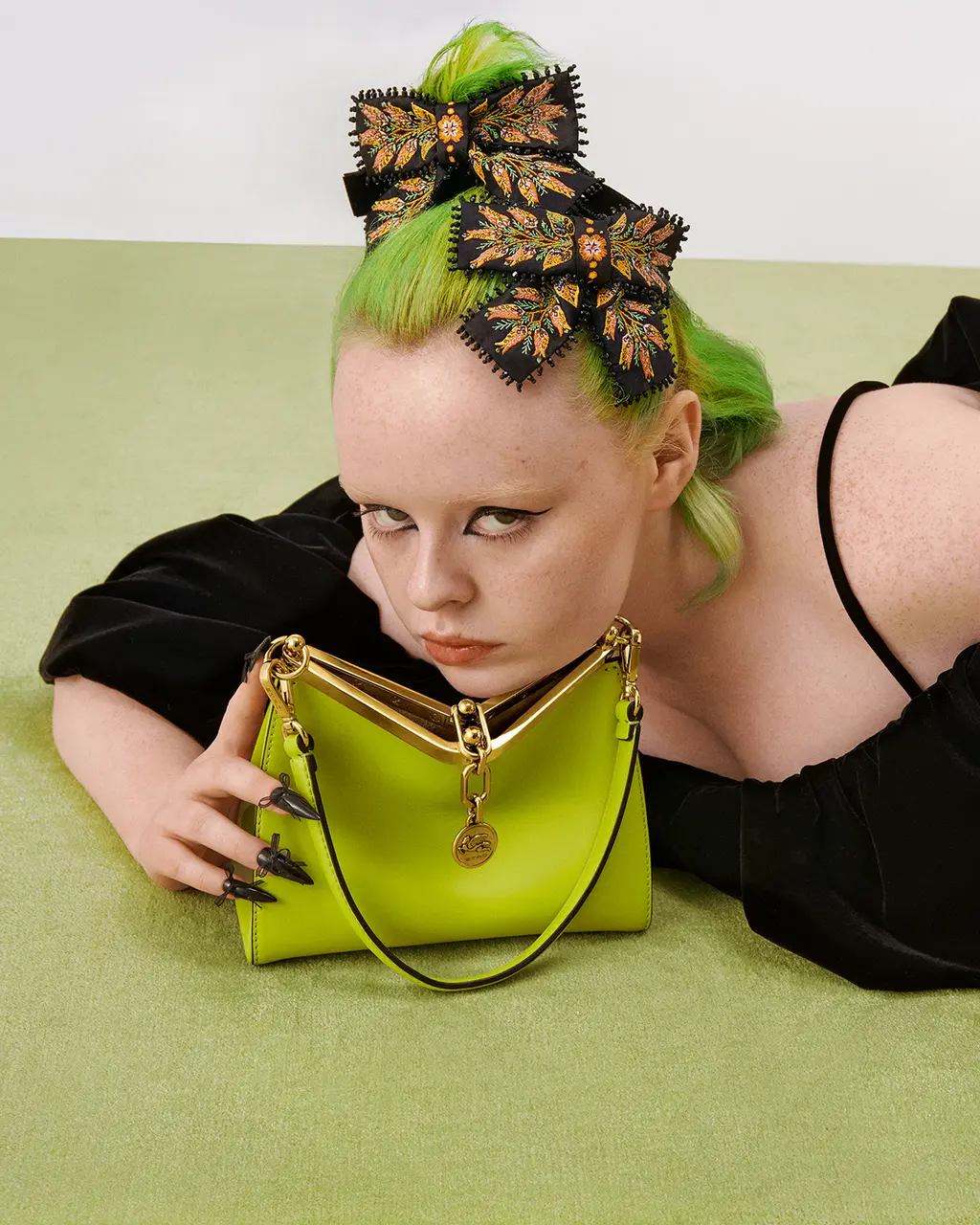 They say the best things come in small packages, and Etro is certainly making a strong case with the launch of its mini Vela bag. Slick, slouchy and minimal, the Vela comes in a playful range of pop colours including lime green, sky blue, powder pink and tangerine orange, for which the Italian brand was inspired by kidcore culture (see: the campaign).