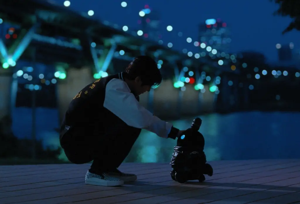 As promised, Moncler has revealed its latest offering, with FRGMT by Hiroshi Fujiwara – the Japanese streetwear designer, actor and musician, who THE FACE collaborated with in 2019 on a series of T‑shirts and hoodies featuring some of our greatest covers from the ’80s and ’90s. For Fujiwara’s collaboration with Moncler Genius, the 59-year-old looked to the subtle art of romance, even bringing along LOVOT – an adorable robot programmed to provide unconditional love to its owner – for the campaign, where it stars alongside Kpop superstar Hwang Minhyun.
