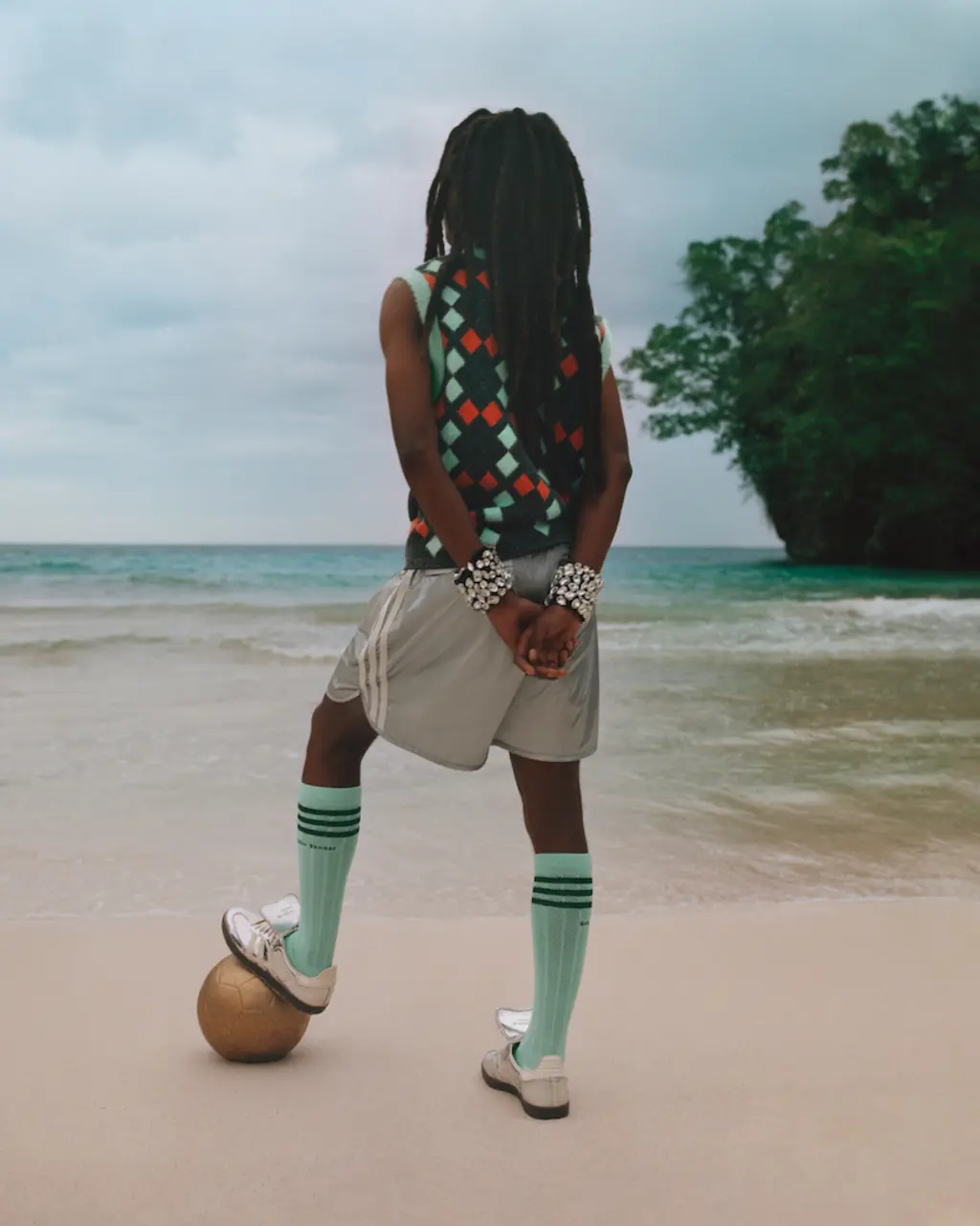 Of course, an adidas Originals by Wales Bonner link-up wouldn’t be complete without some serious footwear. This season, the WB Samba returns in a natural colour palette with a nubuck upper and leather stripes, while the second offering hits the spot in silver with contrasting crochet stripes. The adidas SL72 of the previous season is back, too, this time in green and yellow for a head-to-toe homage to Jamaica. The collection is tied together in a sun-drenched campaign shot by photography and directorial duo Jalan and Jibril Durimel, who celebrate the people, places and cultural identity of island life in the Caribbean – a slice of summer days to come. We can hardly wait.