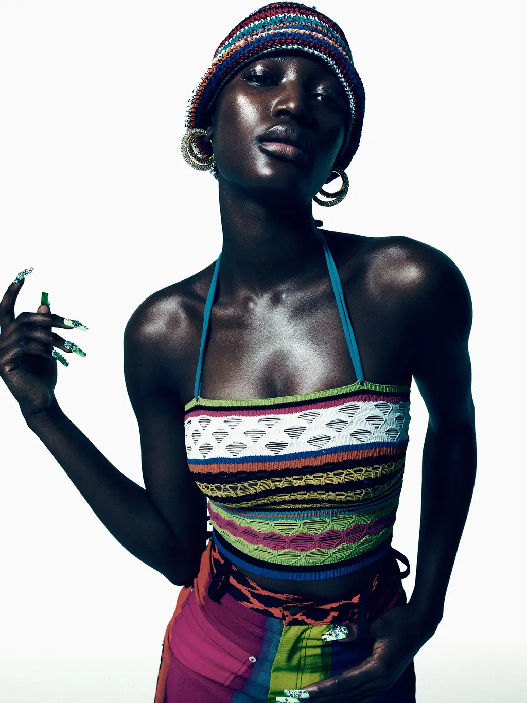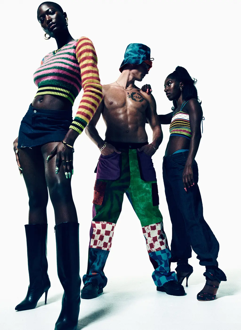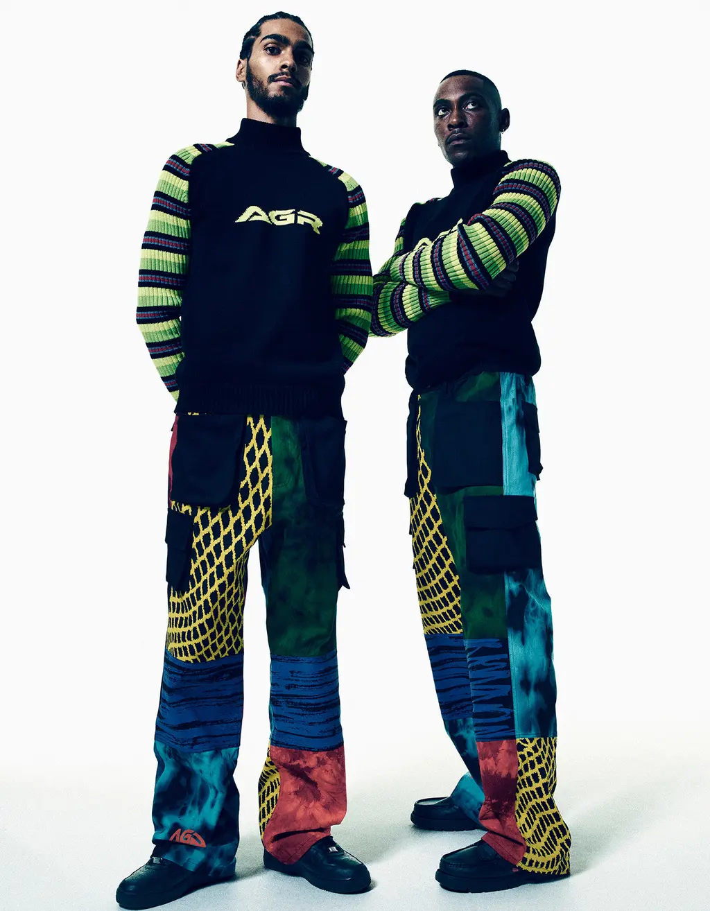 Robinson’s first design break-through for AGR came in 2019 but, unsurprisingly, not in the most conventional way. Having established her signature Day-Glo, maximalist style behind the scenes, it was at Notting Hill Carnival when the public had their first taste for it, too. Her friends and self-confessed muses, including stylist and Wavey Garms co-founder Rhiannon Barry, Htown founder Harry Fisher and musician Greentea Peng, had asked her to design the pieces for the upcoming bank holiday weekender. At the time, she was the supervisor of a pub in Tottenham, working at a yarn shop on the side. “I thought, let’s make this into a thing since I’m making 20 outfits anyway,” she says. “Then Nike sent, like, 45 pairs of trainers for us. From there people started talking about it, and it really kicked off.”
