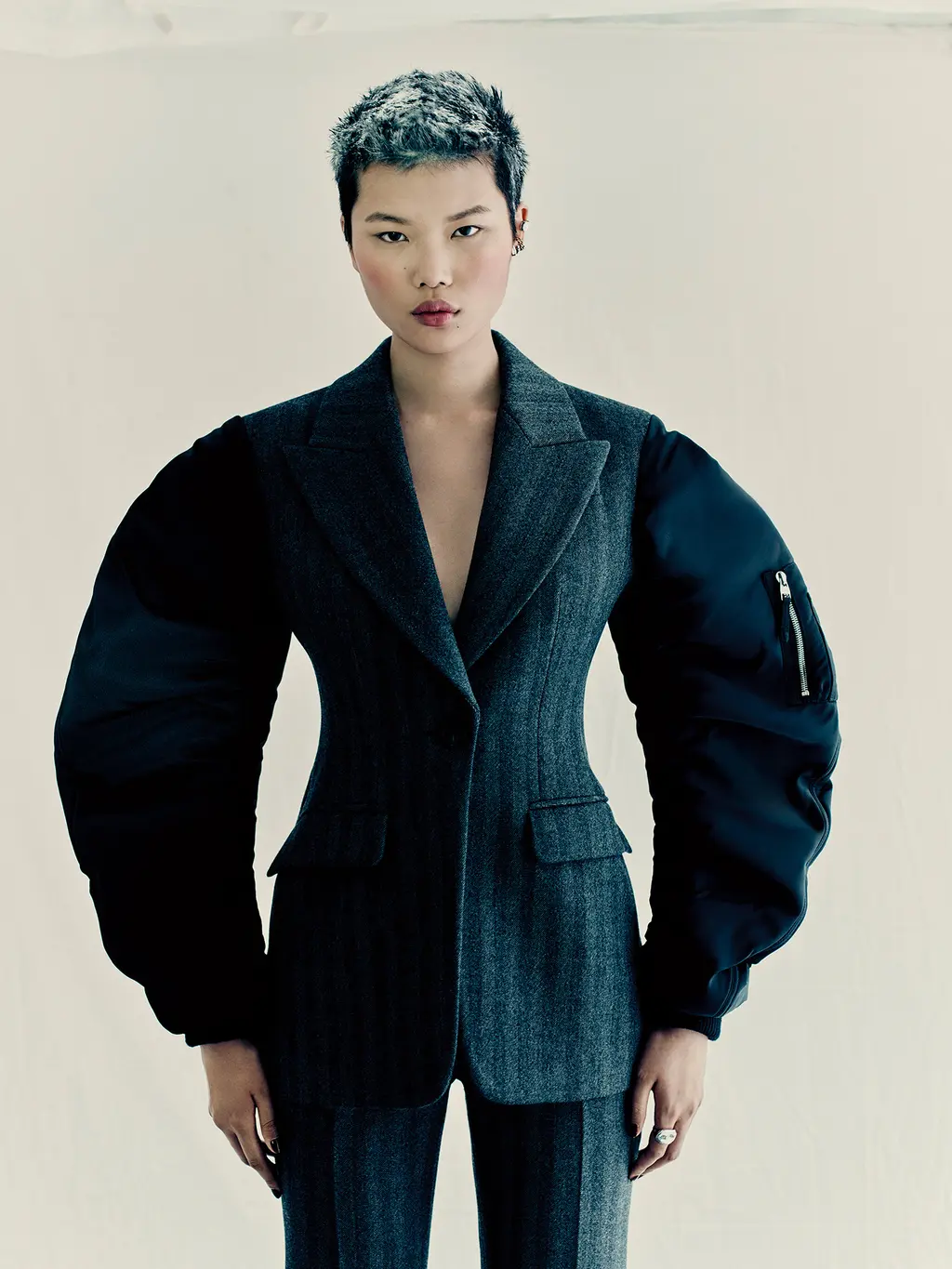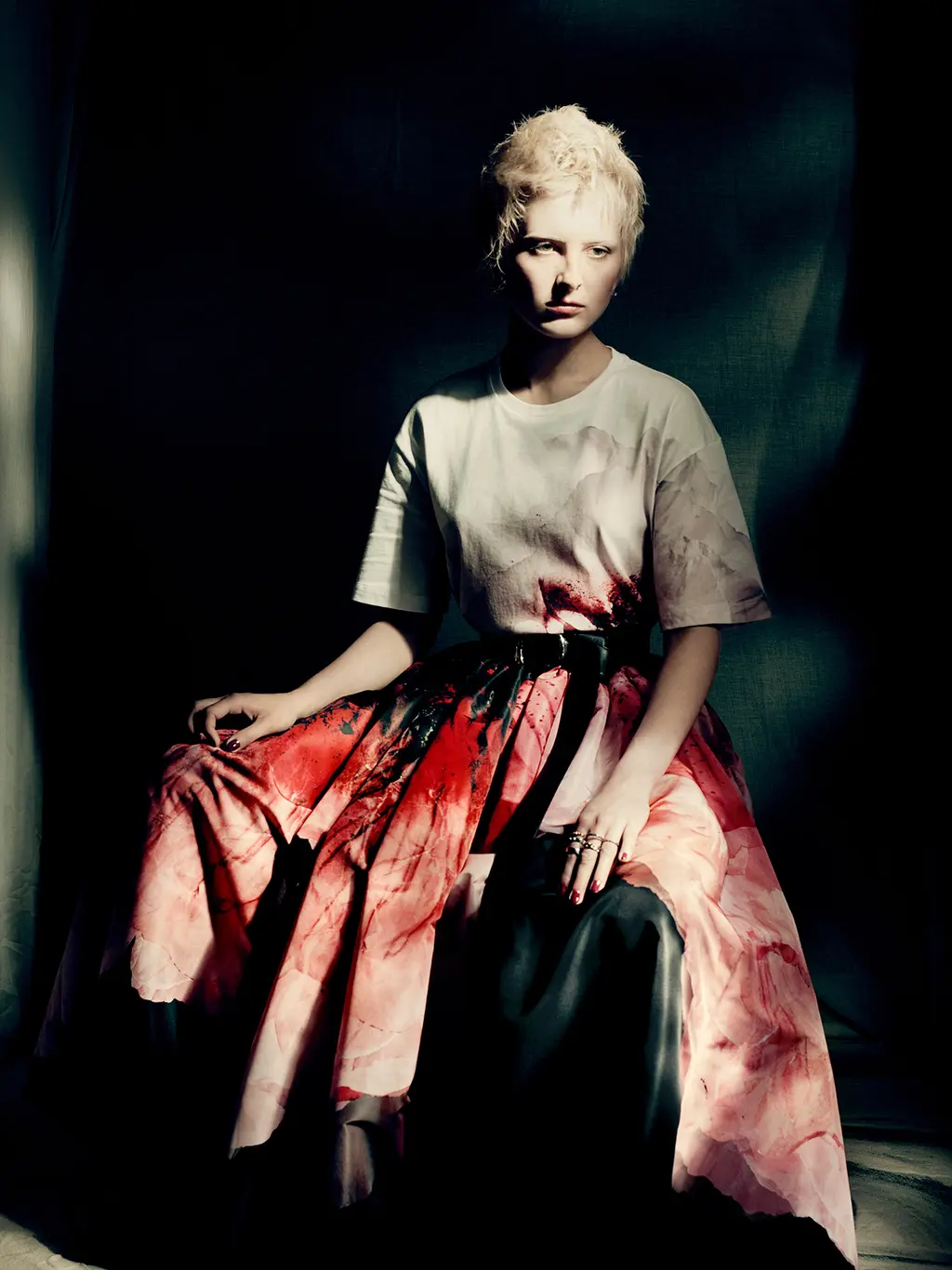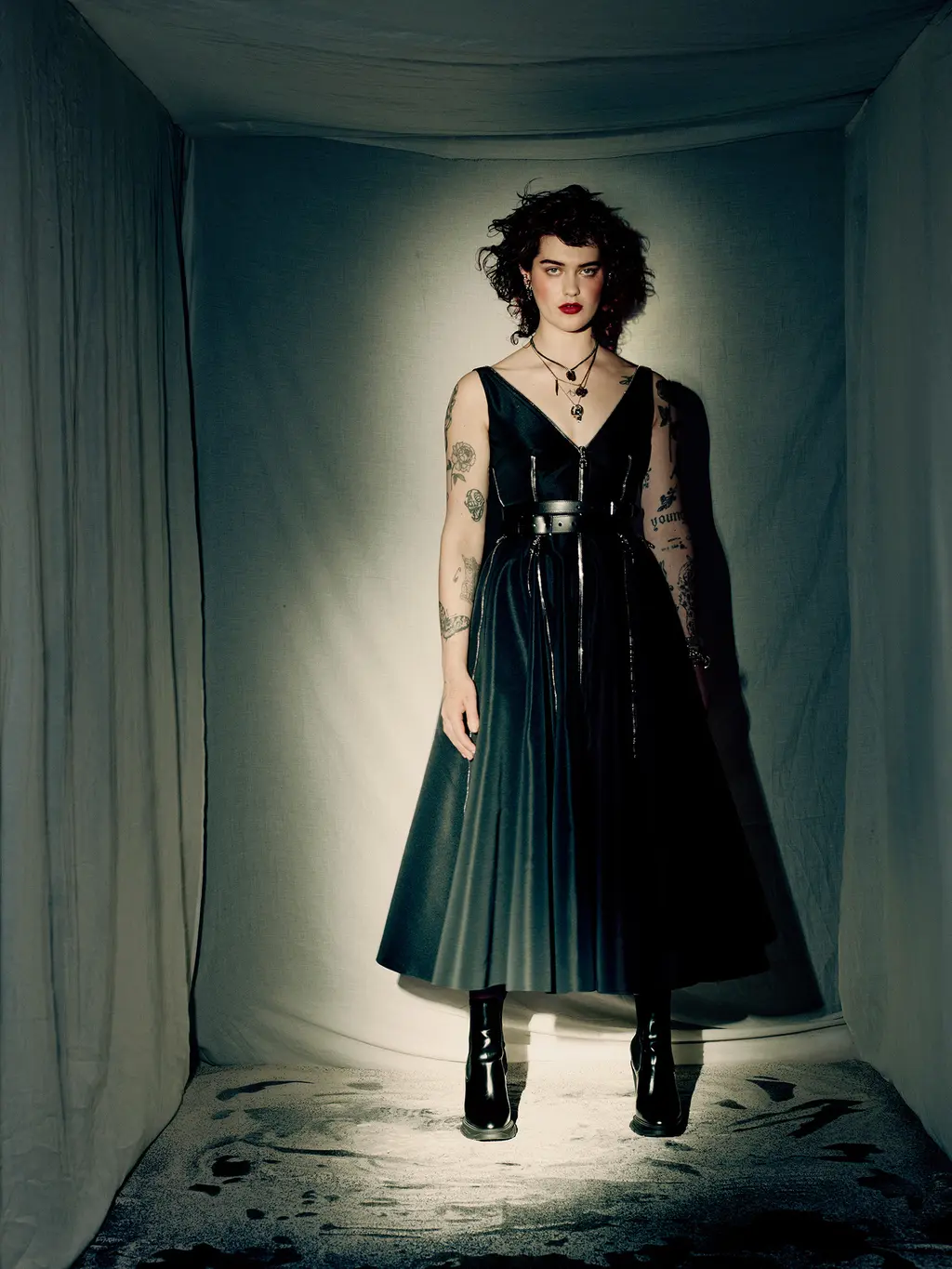 It’s these details that retain the tough resilience of the British fashion house. Burton, as ever, meditates on the strong woman – counterbalancing vulnerability with stealth, harshness with delicacy, and, sartorially, cloth with leather, to dramatic effect.