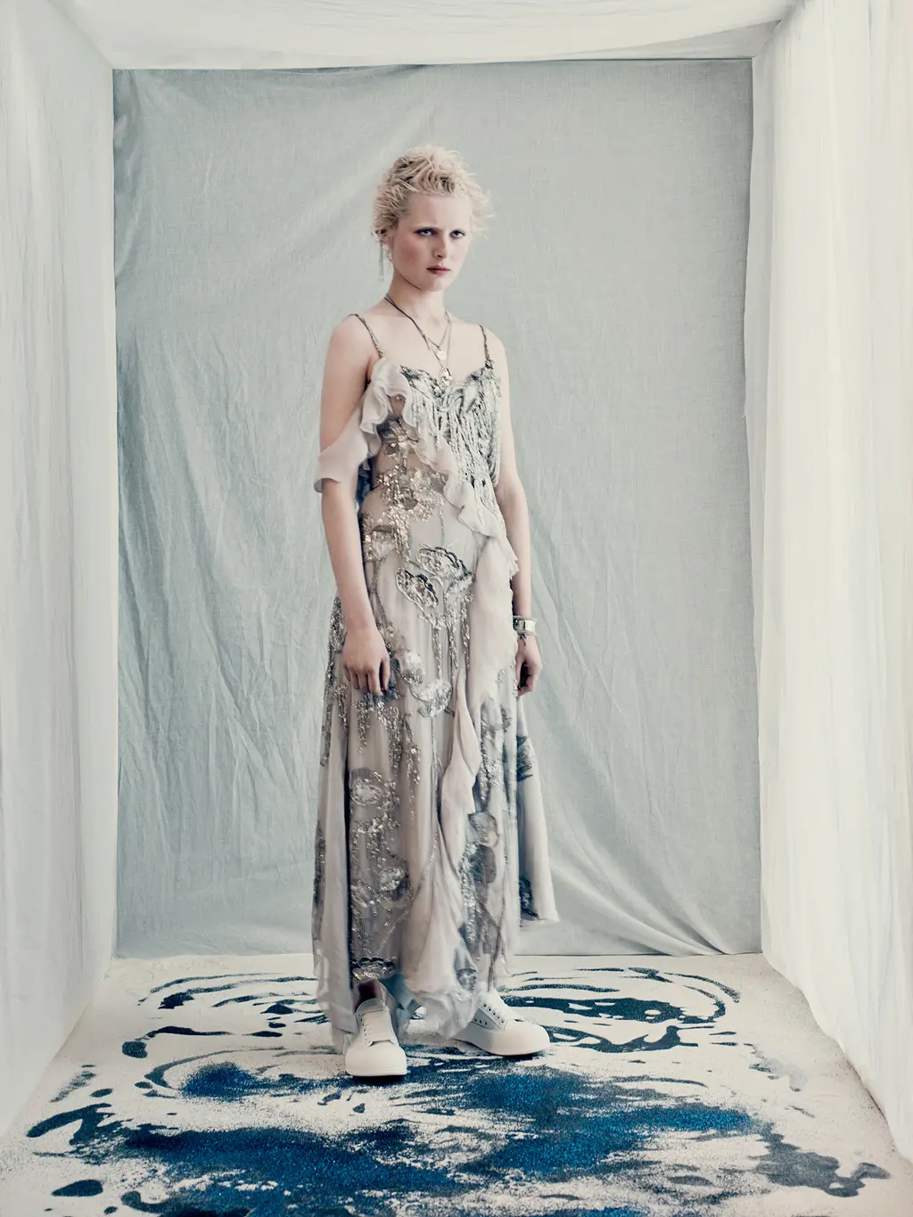 While McQueen’s creative director was prevented from taking her usual research trips around the country last year, for AW21 she examines the beauty of British nature, looking at the healing properties of water and anemones – a pretty flower in the buttercup family – for a collection titled, well, Anemones.
