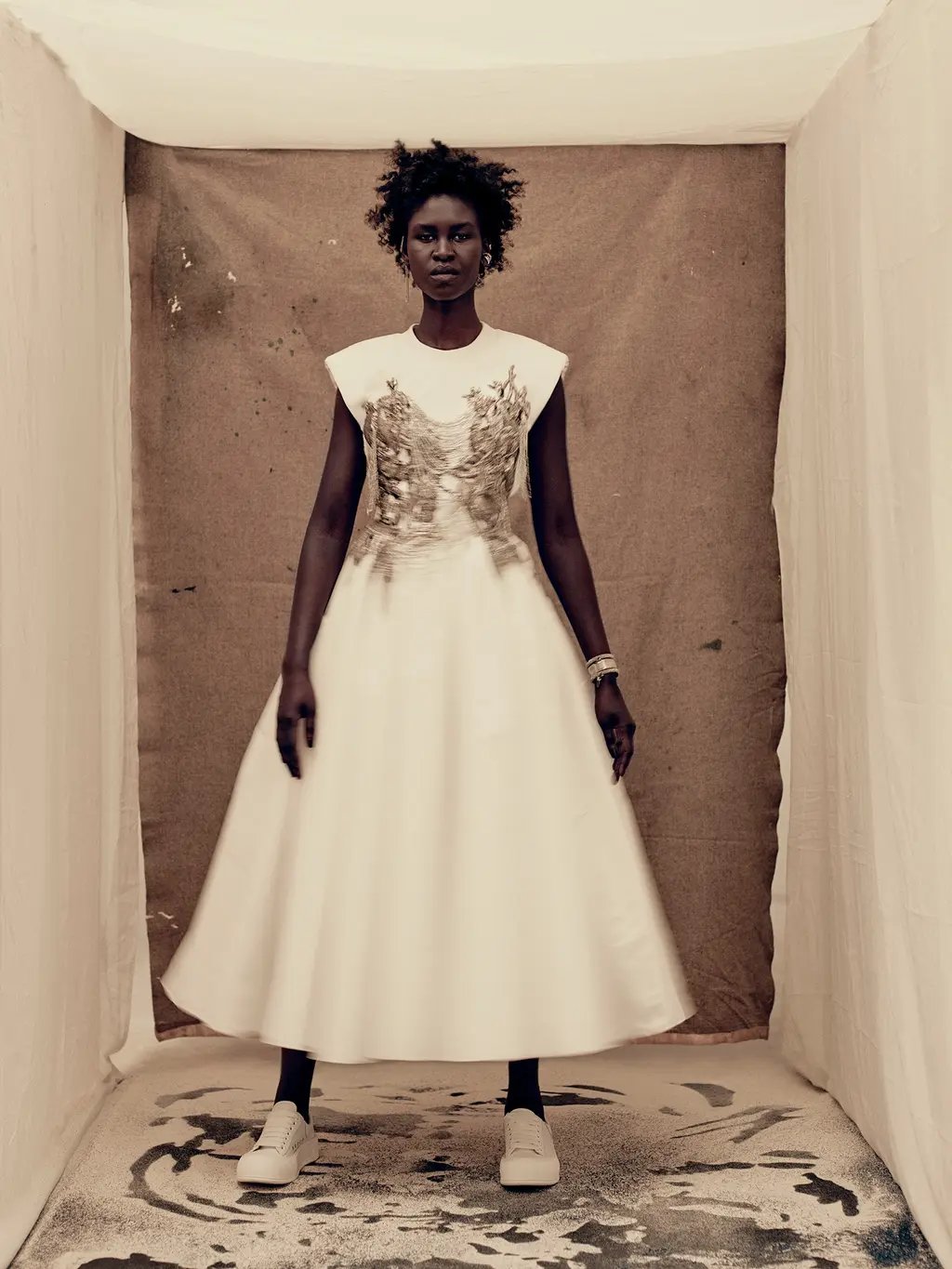 If Sarah Burton’s last Alexander McQueen collection looked at the bleak nakedness of London in the midst of a global pandemic – when streets were empty and a pollution-less nature was gently restoring itself – this season, it is Burton who is healing. Or, in her words, making “something beautiful, something meaningful.”