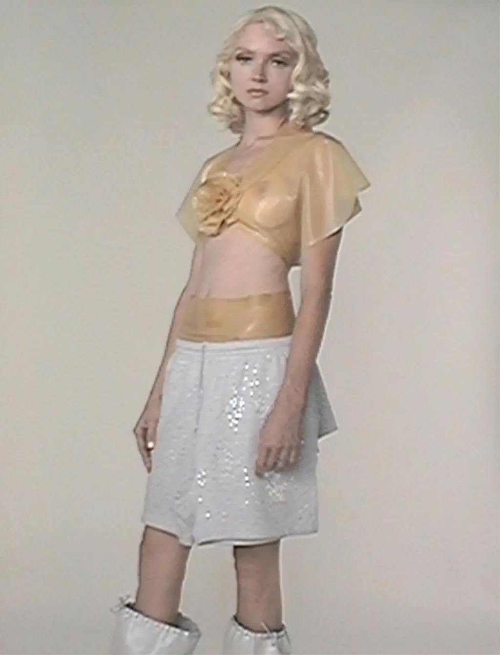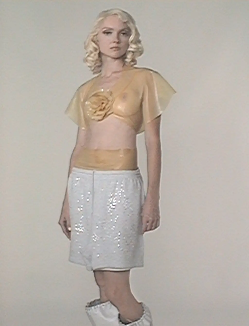 But if you’d tried to Shazam the soundtrack, you’d have been unsuccessful. The score was composed for the occasion by All – In’s long-time collaborators Smerz – aka Norwegian duo Henriette Motzfeldt and Catharina Stoltenberg. And the innovation didn’t end there: the pieces add up to an eight-track EP that chronicles the story of a fictional pop star. Her name? Allina. In fact, the music was very much the starting point for the collection, which narrates Allina’s demise after her 15 minutes of fame.