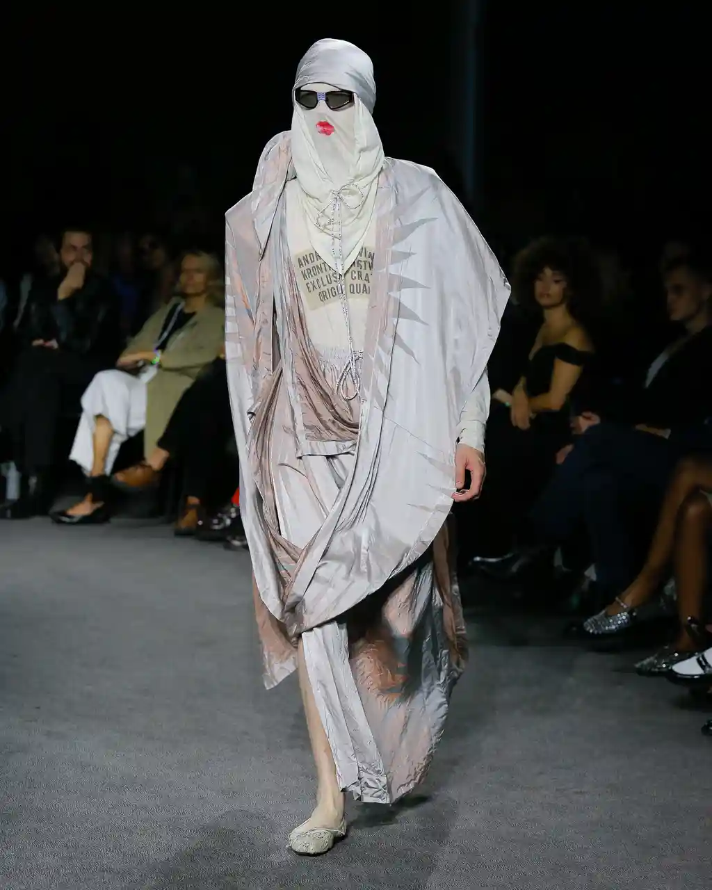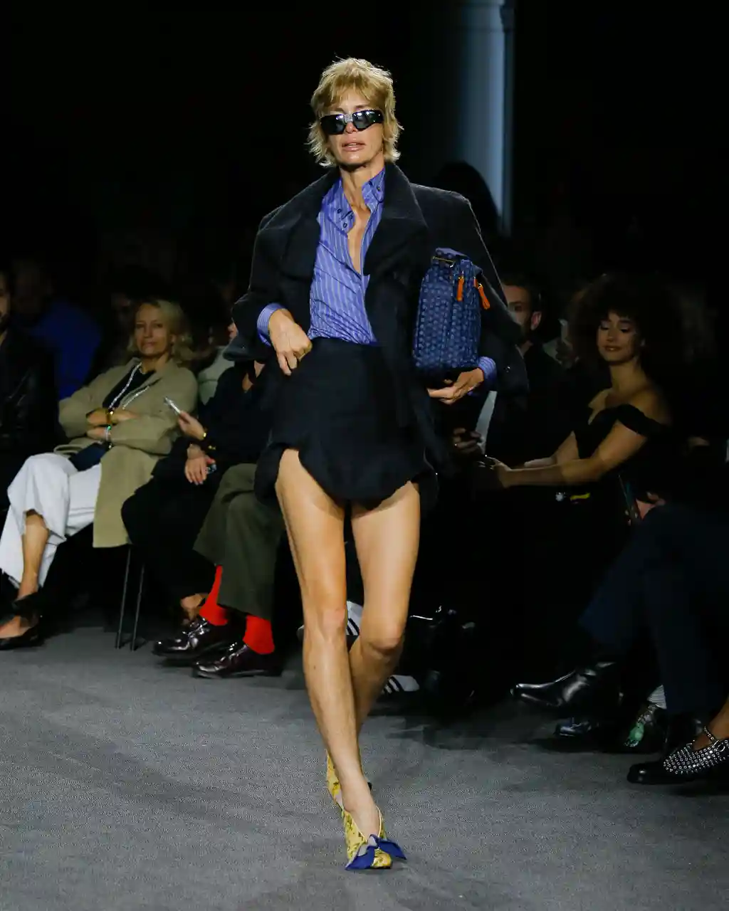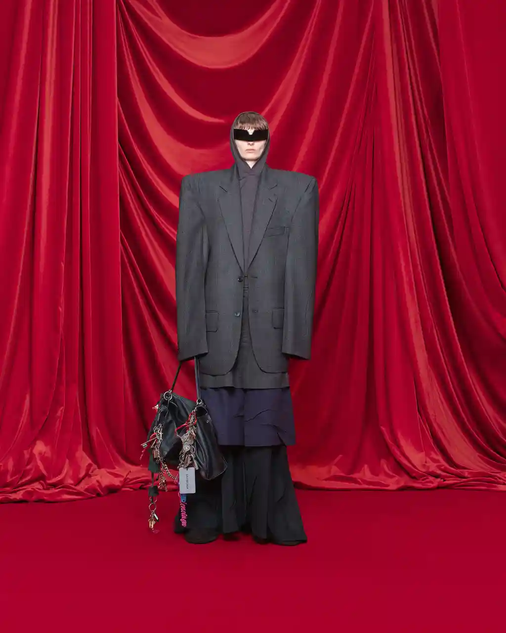 A proper family affair with Demna’s mum and husband joining his ex-fashion tutor Linda Loppa, fashion critics Cathy Horyn and Diana Pernet, and performer Amanda Lepore on the runway.