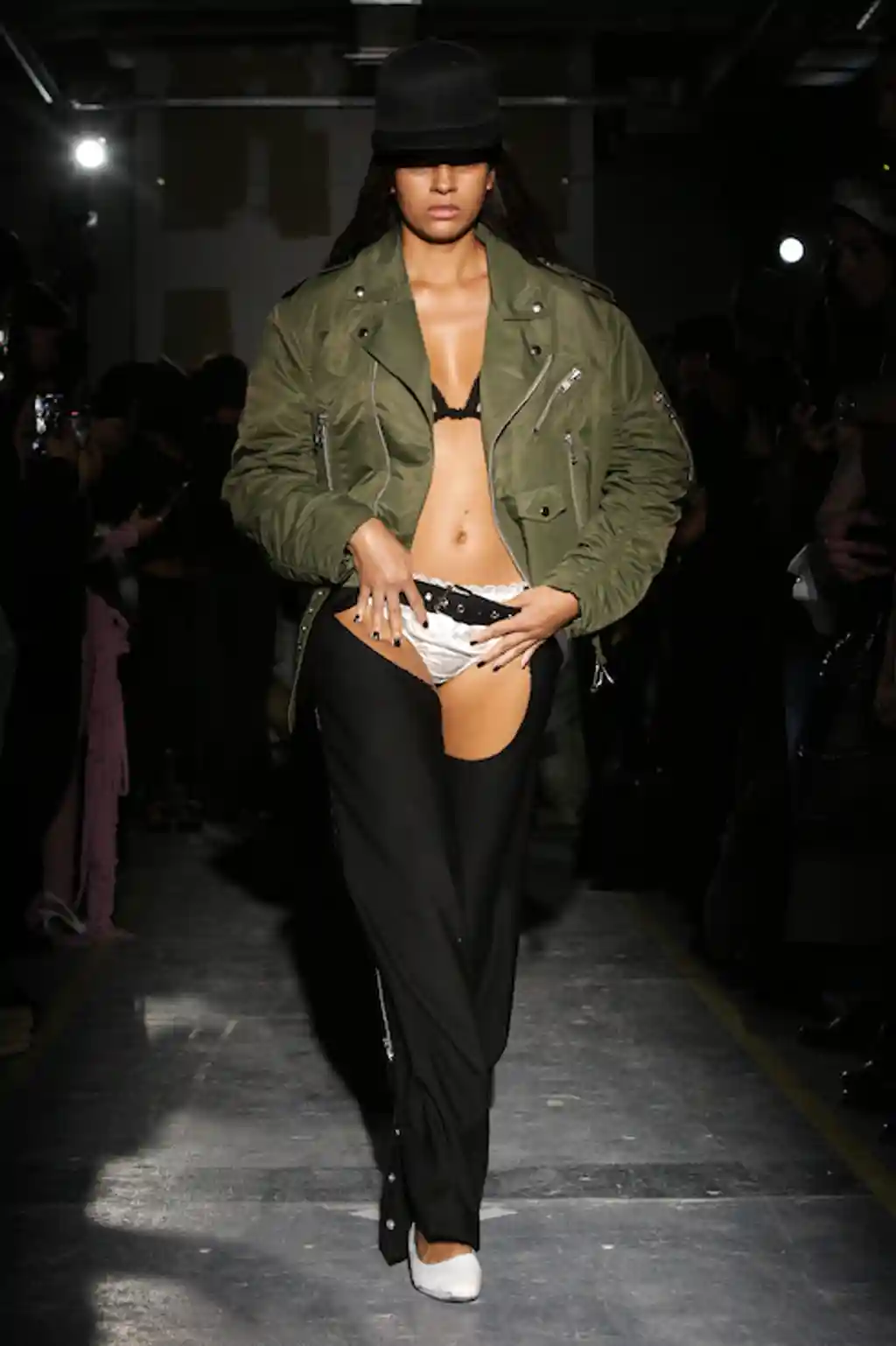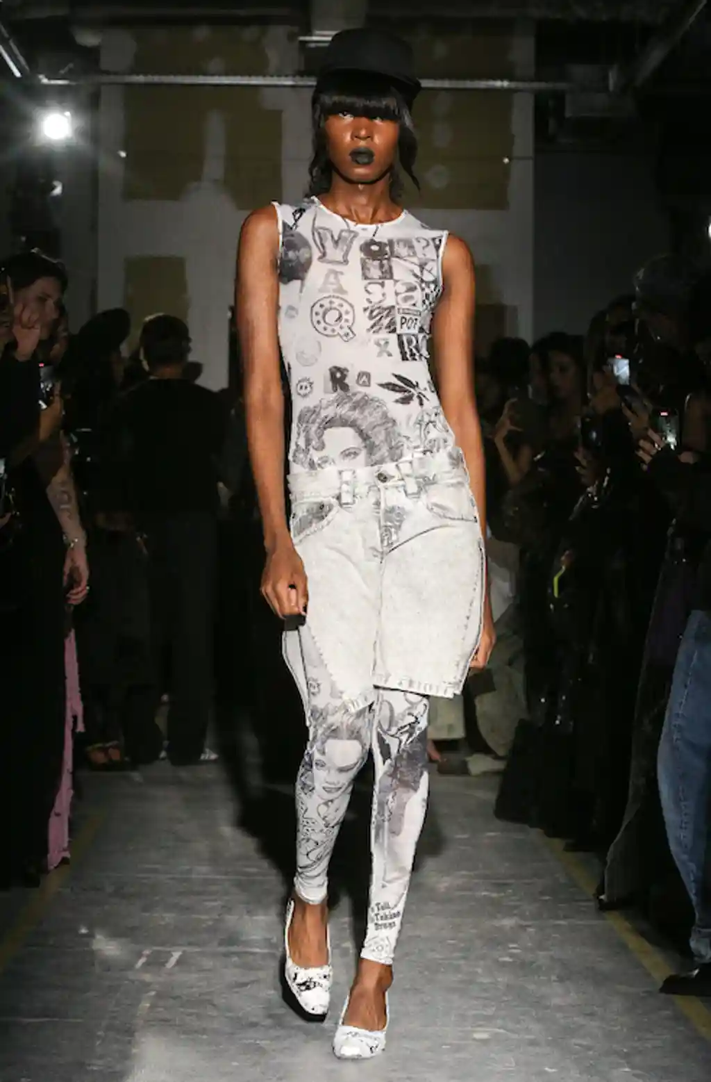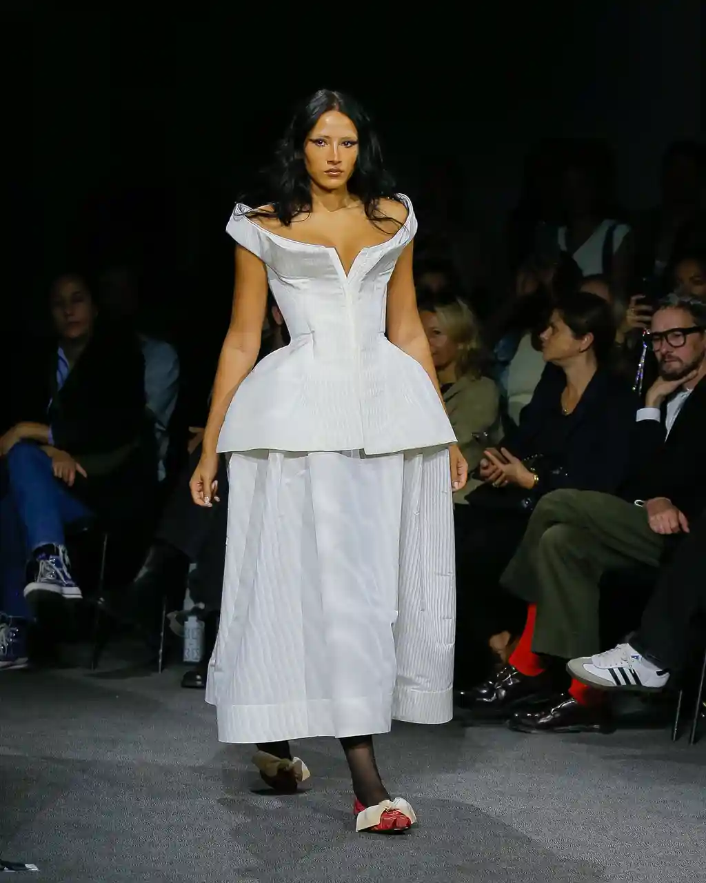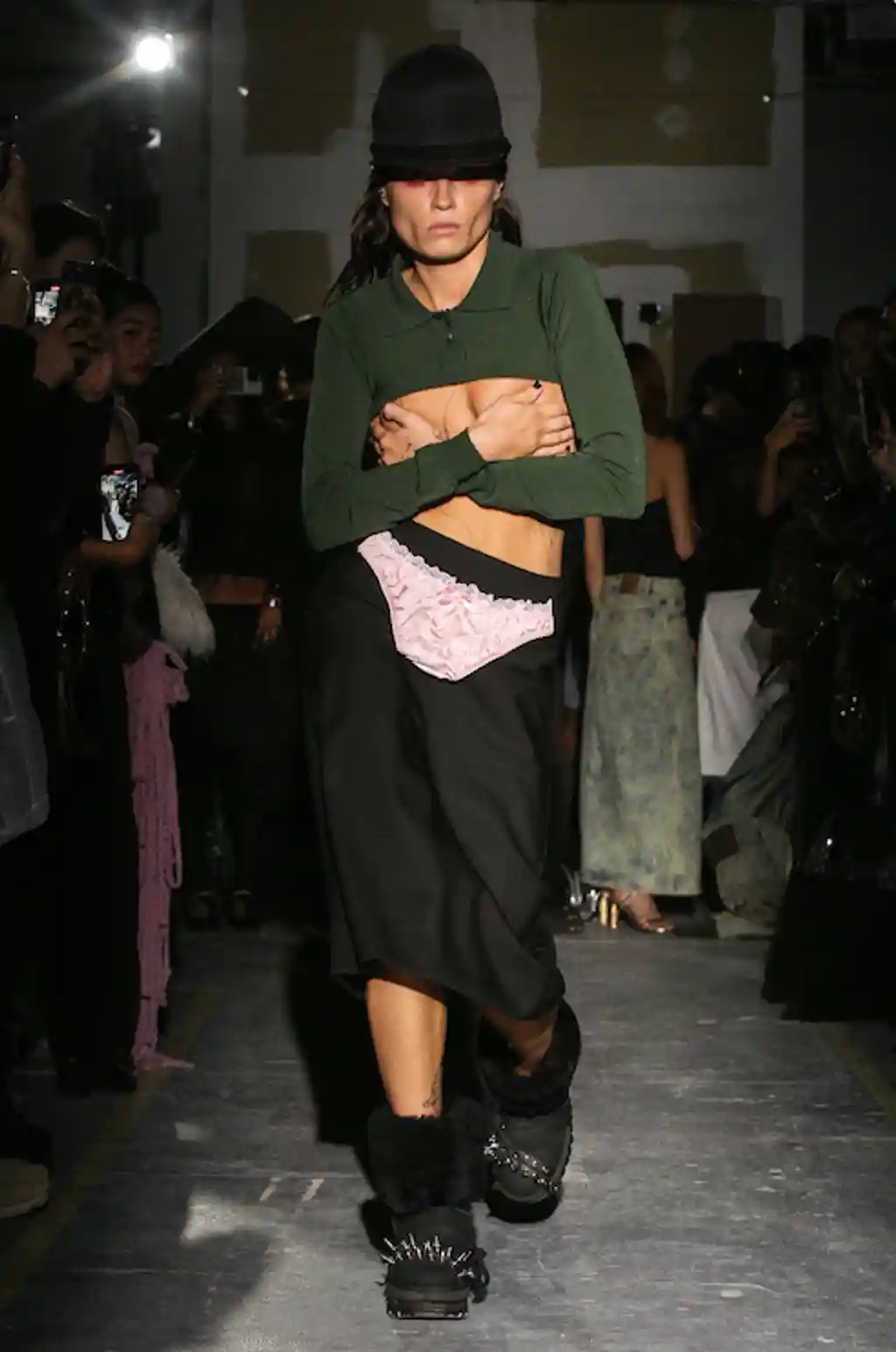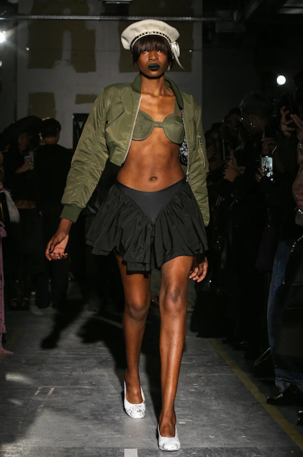 A mixed bag of famous faces: Charli XCX (again!), Em Rata, Maisie Williams and experimental musician Eartheater all sat on the front row. The show itself featured a surprise appearance from Naomi Campbell.