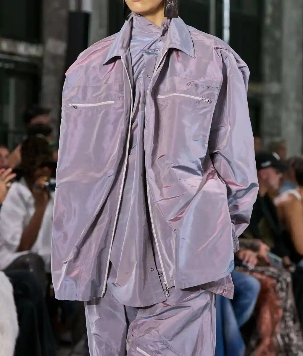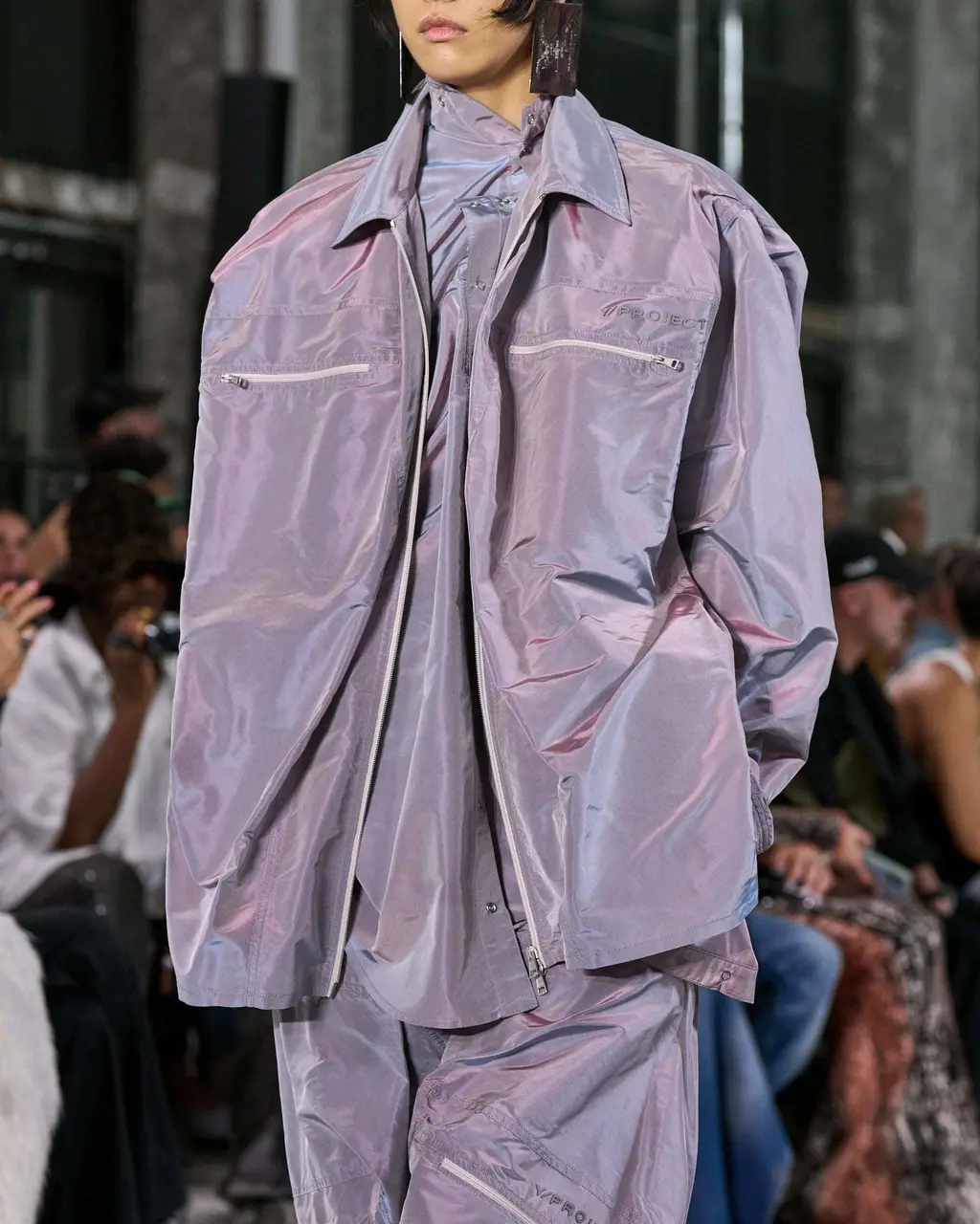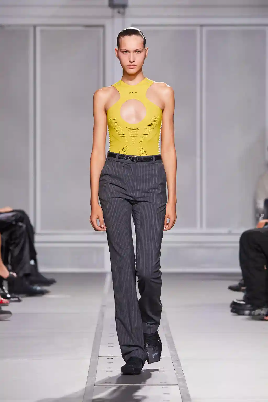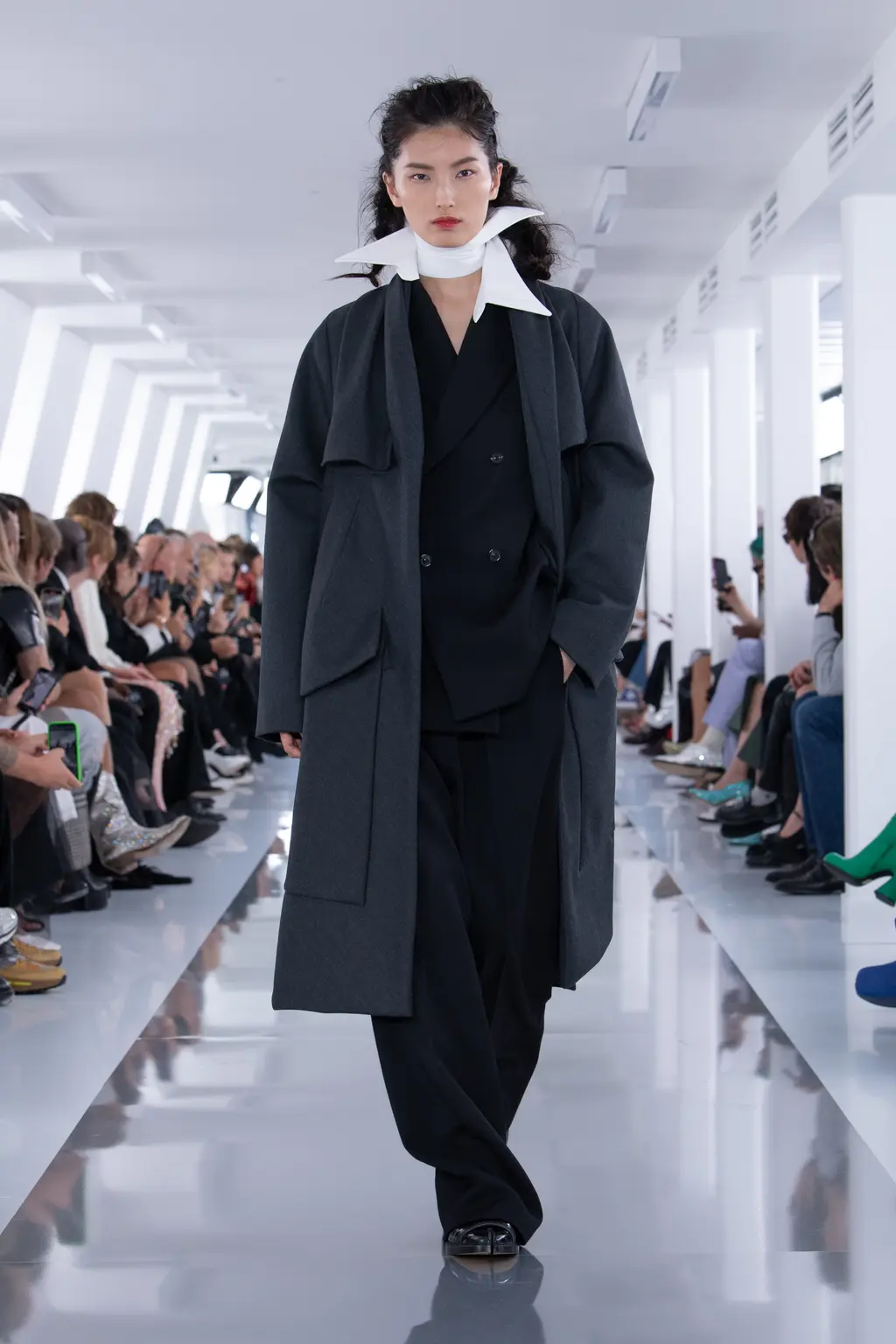 This was Coperni without the spray-on dress or Boston Dynamics robo-dogs. Instead, Sébastien Meyer and Arnaud Vaillant presented a stripped back, tech-focused collection exploring the interaction between clothing and sound.