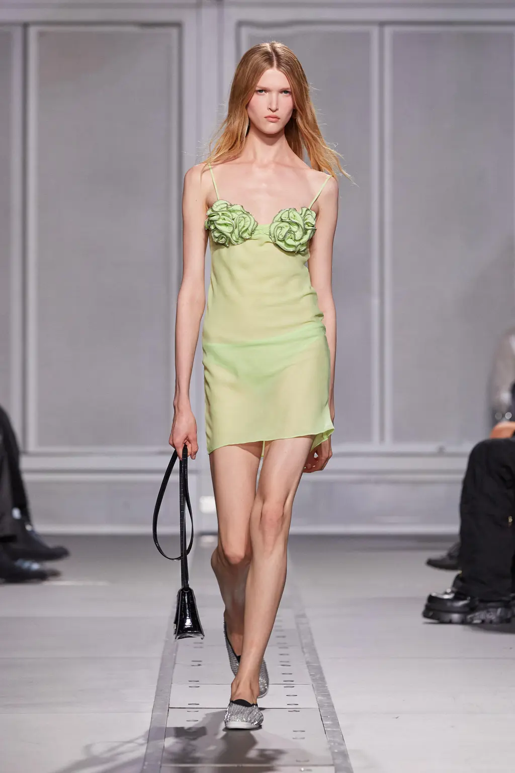 Pier Paolo’s collection was a response to this victim blaming rhetoric and the fear that Meloni’s far-right party, Brothers of Italy, could potentially rollback rights for women. “We have to keep women’s freedom to express themselves, to express their bodies in a very free way,” the designer said. “I think that feminism is the freedom of women to be who they are. Even to expose the body, and say no.” This was translated in body exposing cut-outs in the form of delicate embroidered mini dresses crafted in the shape of flowers or baroque embroidery. These appeared alongside denim, trouser suits and crisp white shirts and blazers, clothes that rooted the more ethereal offerings in the everyday.