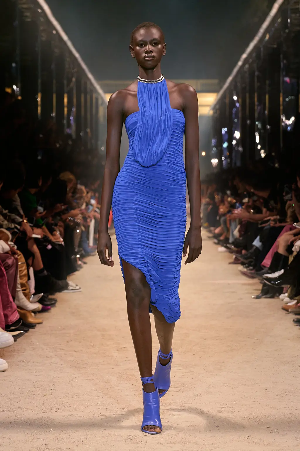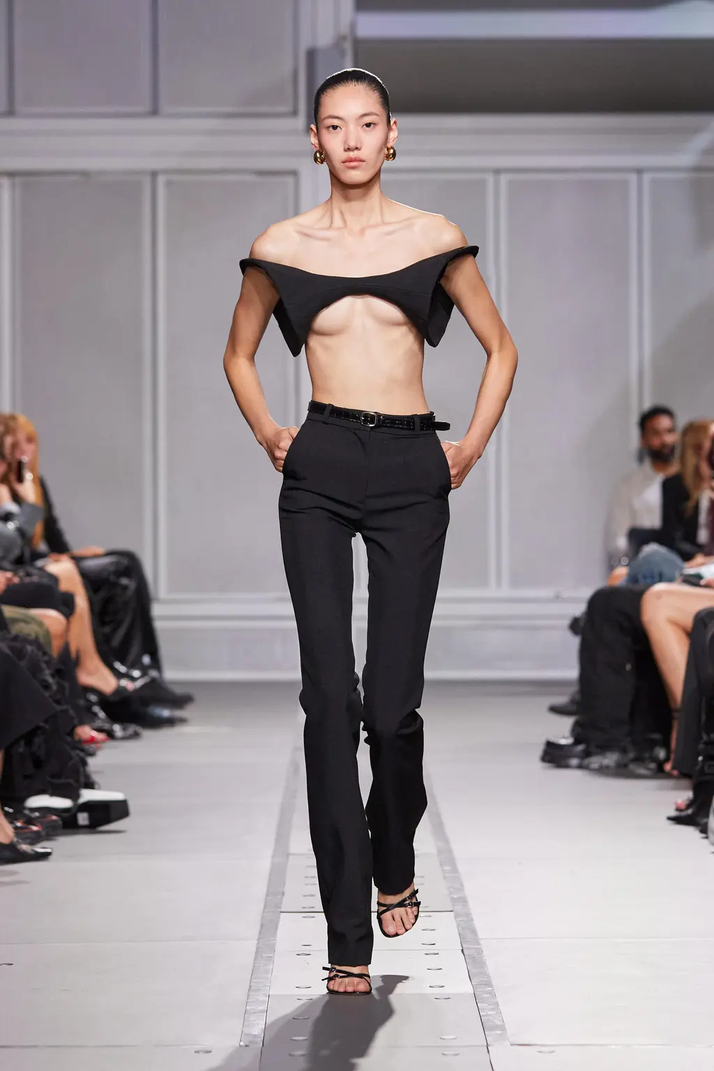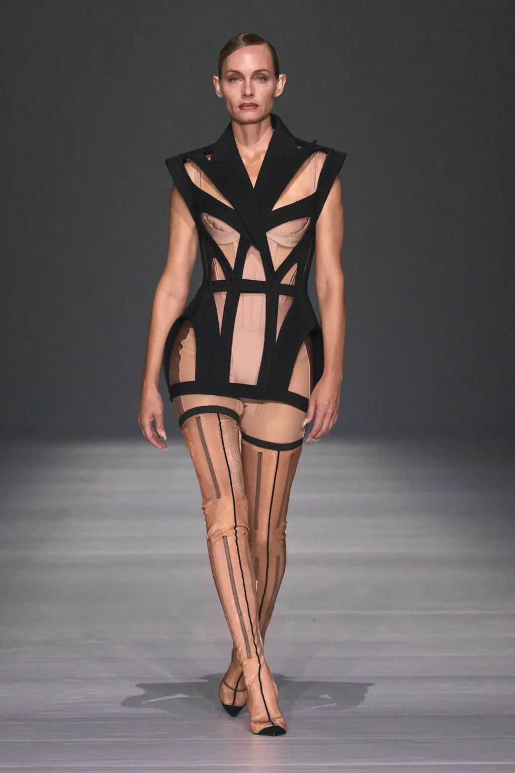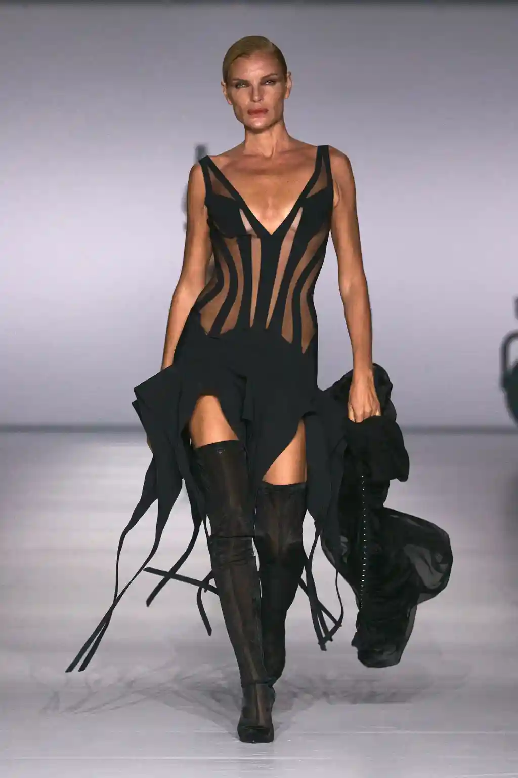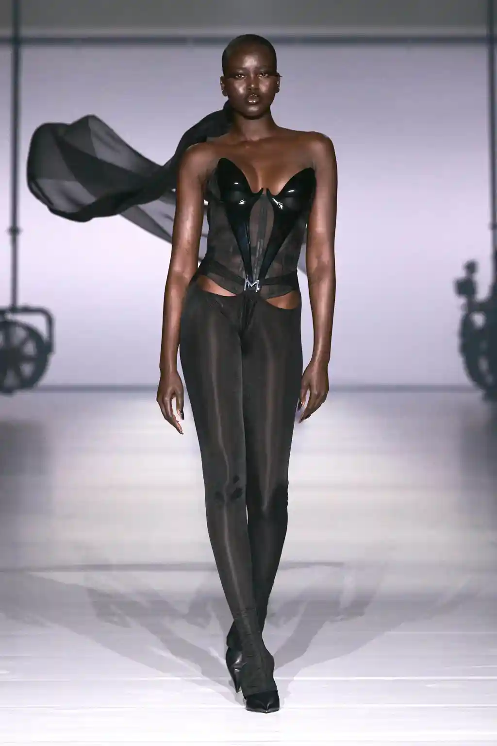 When Mugler’s H&M collab sold out online in just eight minutes, it boosted their legendary corsets and bodysuits into the true mainstream, but it also prompted a change in direction. When people asked creative director Casey Cadwallader why he had reproduced his best-selling designs – mesh bodysuits, corseted tops, sculptural minidresses – at a more accessible price point, he wanted to answer, “I’m done with these. These have been my best things so far, but I’m going to pivot this way afterwards.” And, this season, pivot he did, pushing the boundaries of Mugler’s design DNA to explore his childhood fascination with marine biology, presenting a collection inspired by the enthralling world of life in the ocean.