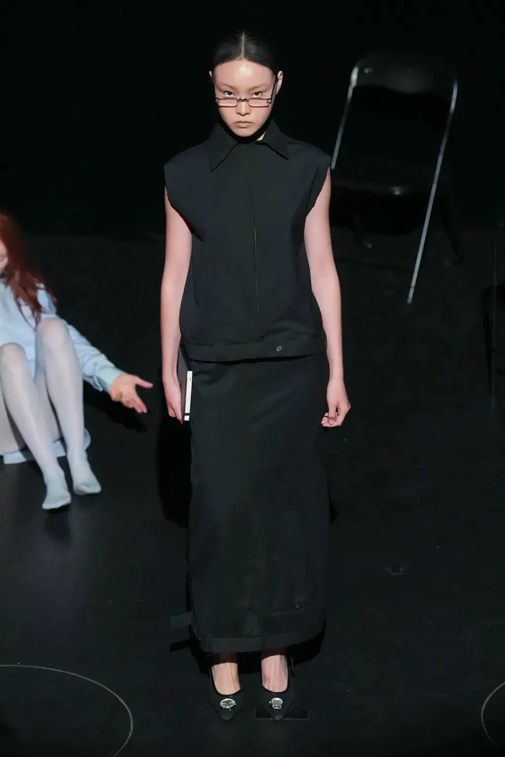 So far, the SS24 shows seem to be urging us to stop working from home and get back in the office, stat. And, to be fair, all this sexy office wear makes going to work look pretty enticing. At Hodokova, there were crisp shirts, pinstripe pants and smart suit dresses. Models were dressed like they’d handed in their notice then raided every office drawer for free pens, as over 2,000 pens in total were attached to ears or made into garments. Models wore Bayonetta glasses, like those recently popularised by model-influencer Gabbriette while Y2K exposed thongs sexed up the whole offering. Anyone who’s ever splashed out on a Moleskine knows that notebooks can be accessories in their own right and here, black leather notebooks were clutched like handbags.