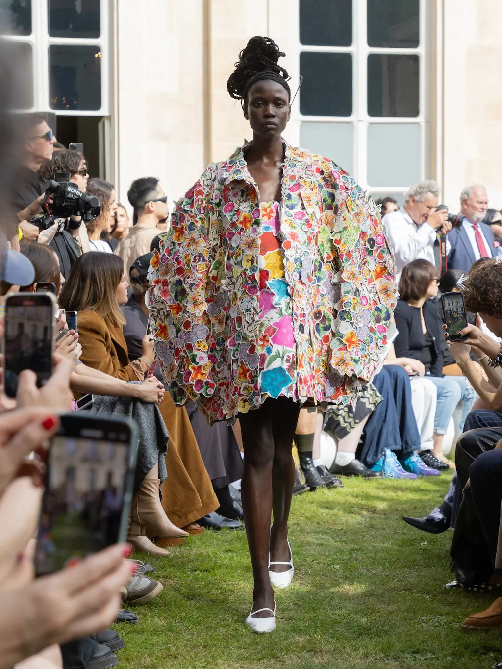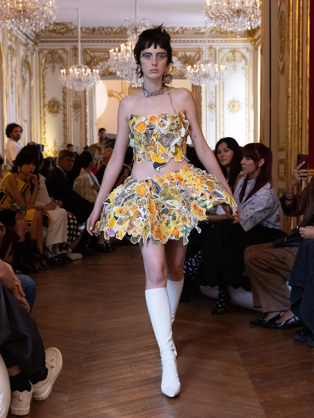 Elsewhere, wildly detailed shimmering floral breast pieces hovered above those high-rise trousers we were just telling you about. As always, humour was key, without feeling gimmicky.