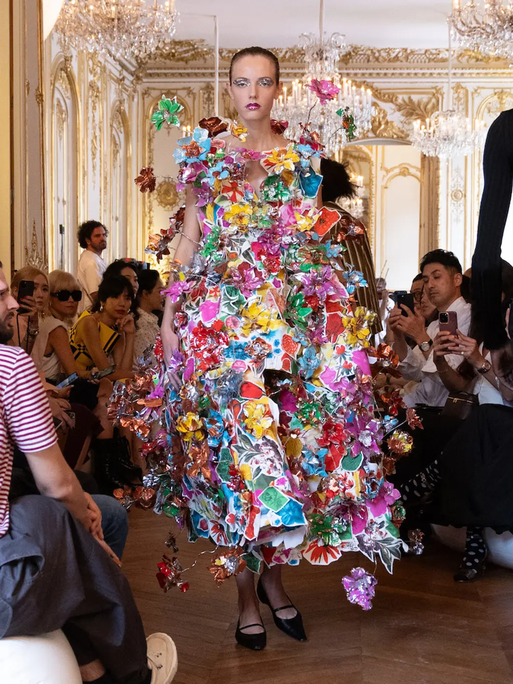 The ASMR moment as models rattled past in dresses made from discarded tin cans moulded into flowers.