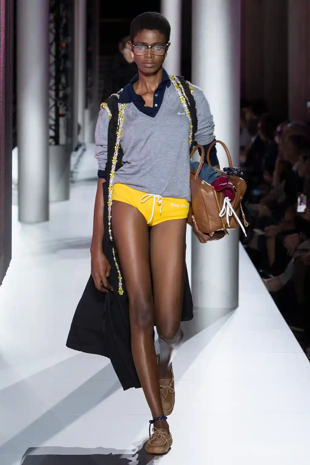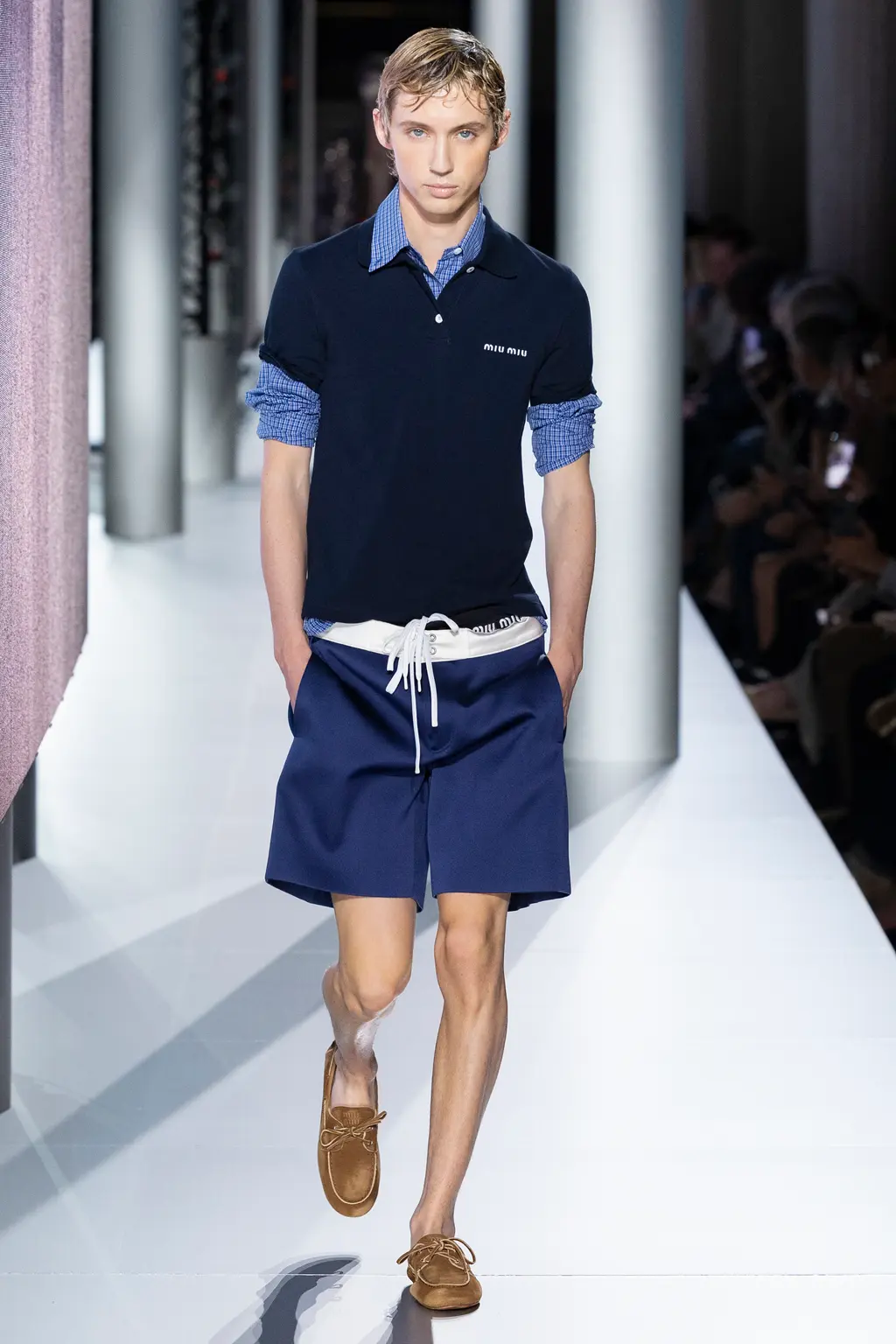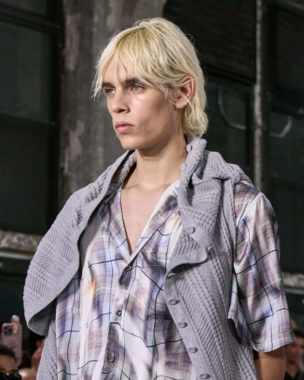 We bet you never thought the outfit you cobbled together in the changing rooms after a school swimming lesson would feature on the Paris runway, but here we are. At Miu Miu’s SS24 show, these mismatched looks were topped off with wet hair and glasses. If last season channelled the aesthetic of the frazzled English woman, this season was all about the frazzled English schoolboy.