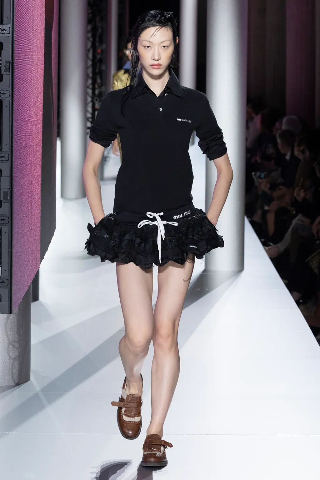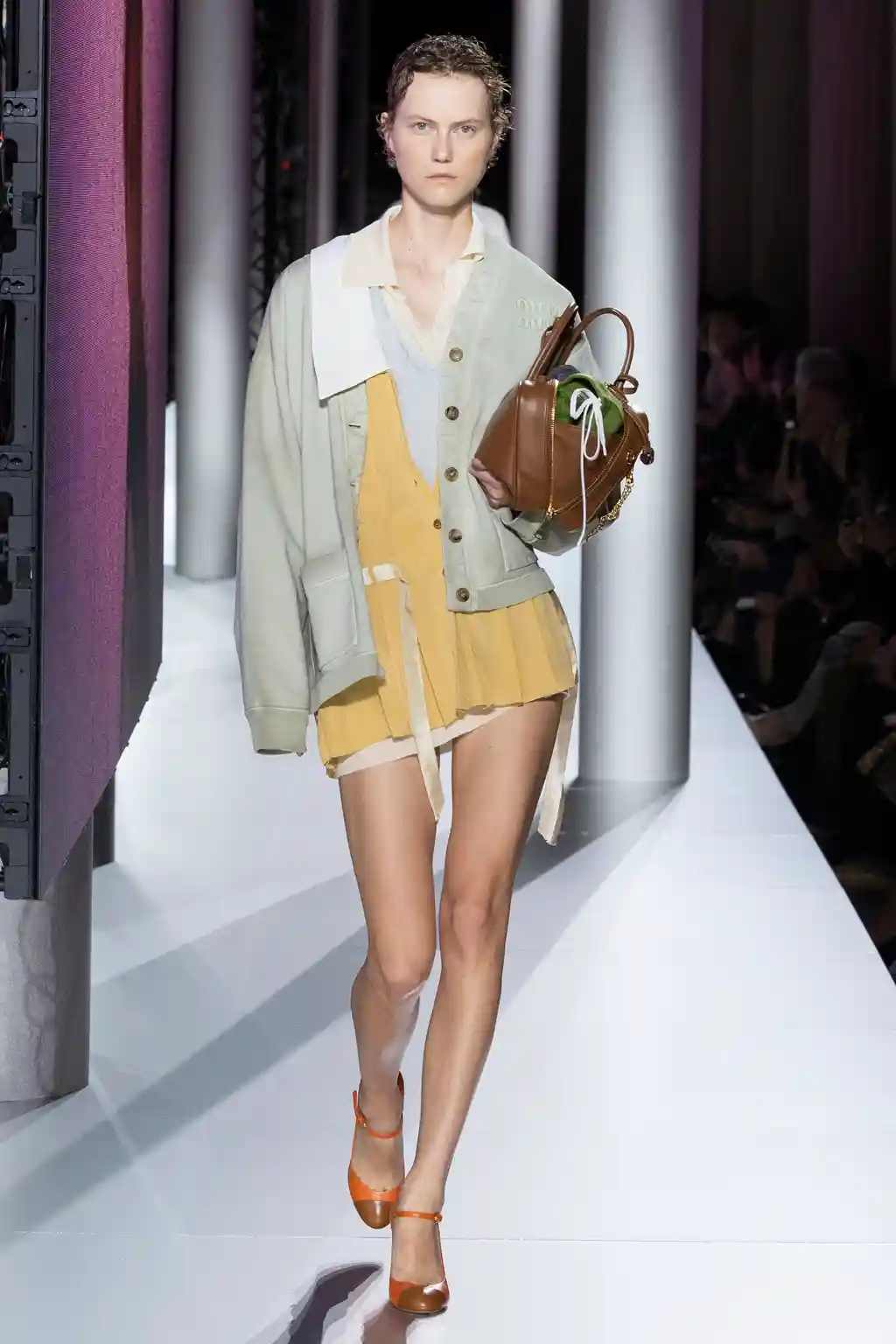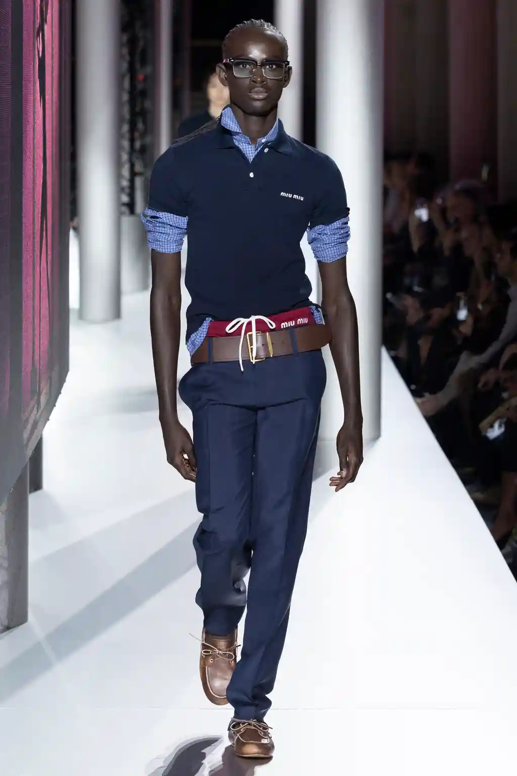 We bet you never thought the outfit you cobbled together in the changing rooms after a school swimming lesson would feature on the Paris runway, but here we are. At Miu Miu’s SS24 show, these mismatched looks were topped off with wet hair and glasses. If last season channelled the aesthetic of the frazzled English woman, this season was all about the frazzled English schoolboy.