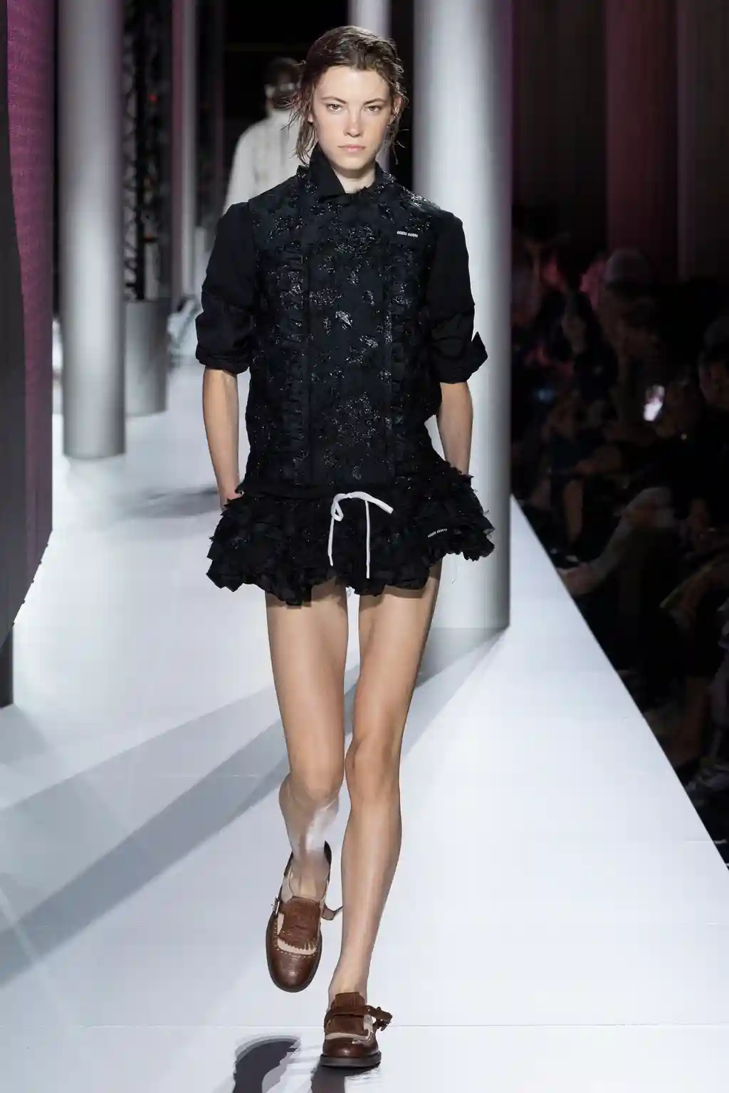 Miu Miu muses Mia Goth, Emma Corrin and Zaya Wade, who all walked last season, sat on the front row along with Emma Chamberlain and Sydney Sweeney.